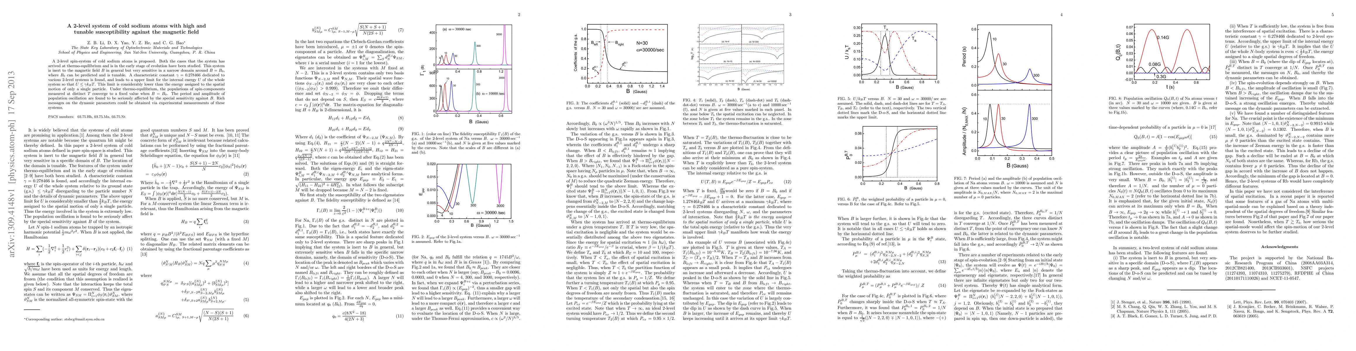 A 2-level spin-system of cold sodium atoms is proposed. Both the cases that the system has arrived at thermo-equilibrium and is in the early stage of evolution have been studied. This system is inert to the magnetic field $B$ in general but very sensitive in a narrow domain around $B=B_0$, where $B_0$ can be predicted and is tunable. A characteristic constant $\gamma=0.278466$ dedicated to various 2-level systems is found, and leads to a upper limit for the internal energy $U$ of the whole system so that $U\leq\gamma k_B T$. This limit is considerably lower than the energy assigned to the spatial motion of only a single particle. Under thermo-equilibrium, the populations of spin-components measured at distinct $T$ converge to a fixed value when $B=B_0$. The period and amplitude of population oscillation are found to be seriously affected by the special sensitivity against $B$. Rich messages on the dynamic parameters could be obtained via experimental measurements of these systems.