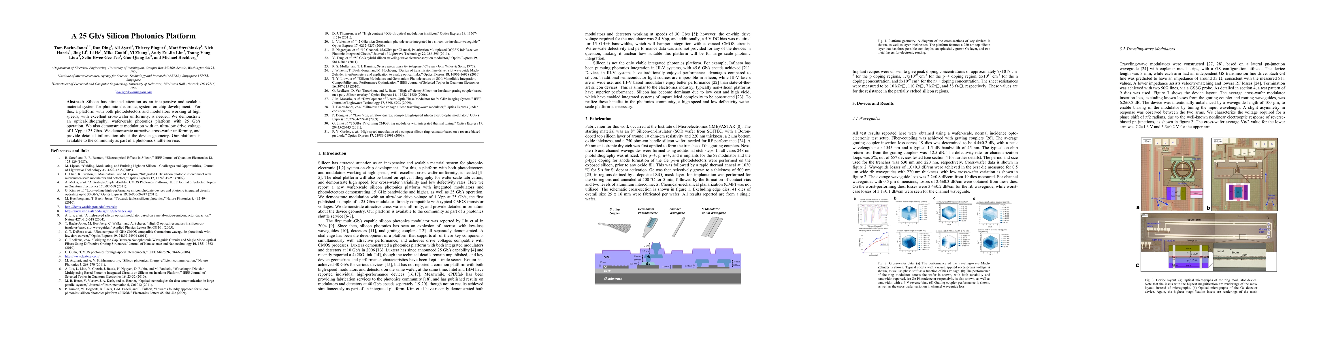 This research presents a scalable silicon photonics platform capable of 25 Gb/s data rates with high-speed photodetectors and modulators, featuring ultra-low drive voltages and excellent cross-wafer uniformity, and is made available to the community via a photonics shuttle service.