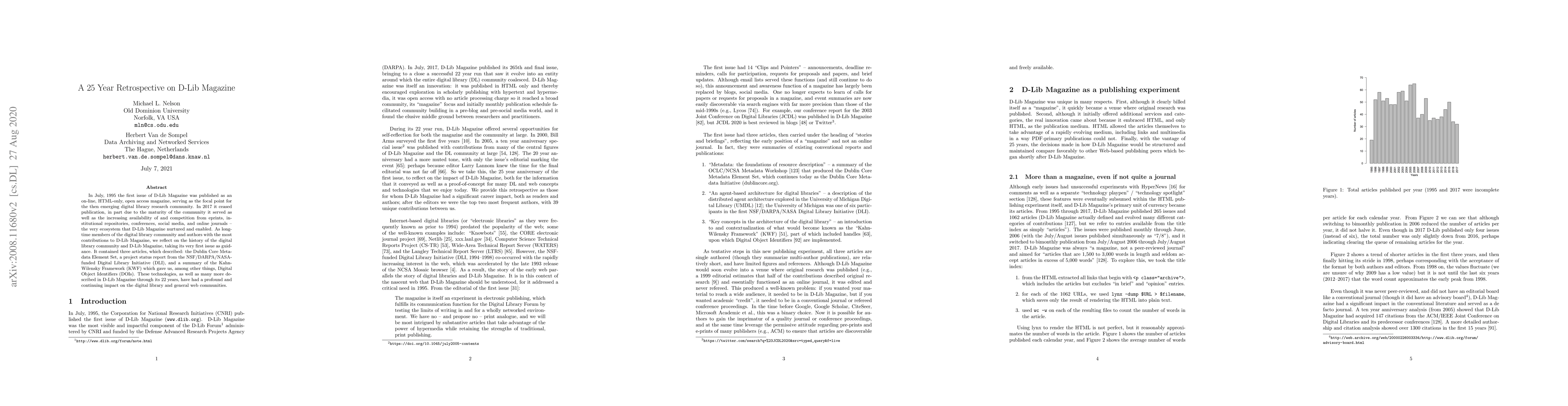 In July, 1995 the first issue of D-Lib Magazine was published as an on-line, HTML-only, open access magazine, serving as the focal point for the then emerging digital library research community. In 2017 it ceased publication, in part due to the maturity of the community it served as well as the increasing availability of and competition from eprints, institutional repositories, conferences, social media, and online journals -- the very ecosystem that D-Lib Magazine nurtured and enabled. As long-time members of the digital library community and authors with the most contributions to D-Lib Magazine, we reflect on the history of the digital library community and D-Lib Magazine, taking its very first issue as guidance. It contained three articles, which described: the Dublin Core Metadata Element Set, a project status report from the NSF/DARPA/NASA-funded Digital Library Initiative (DLI), and a summary of the Kahn-Wilensky Framework (KWF) which gave us, among other things, Digital Object Identifiers (DOIs). These technologies, as well as many more described in D-Lib Magazine through its 23 years, have had a profound and continuing impact on the digital library and general web communities.