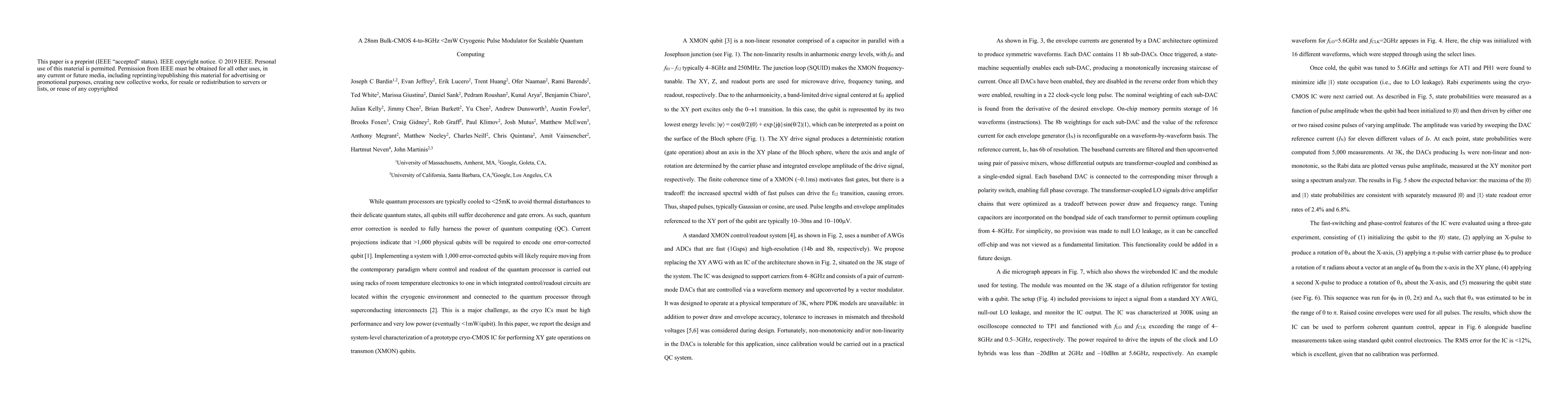 This paper introduces a cryogenic 28nm CMOS pulse modulator optimized for controlling transmon qubits in quantum computing systems, demonstrating its performance in quantum control experiments at <2mW power consumption. The prototype showcases scalability for future quantum computing applications.