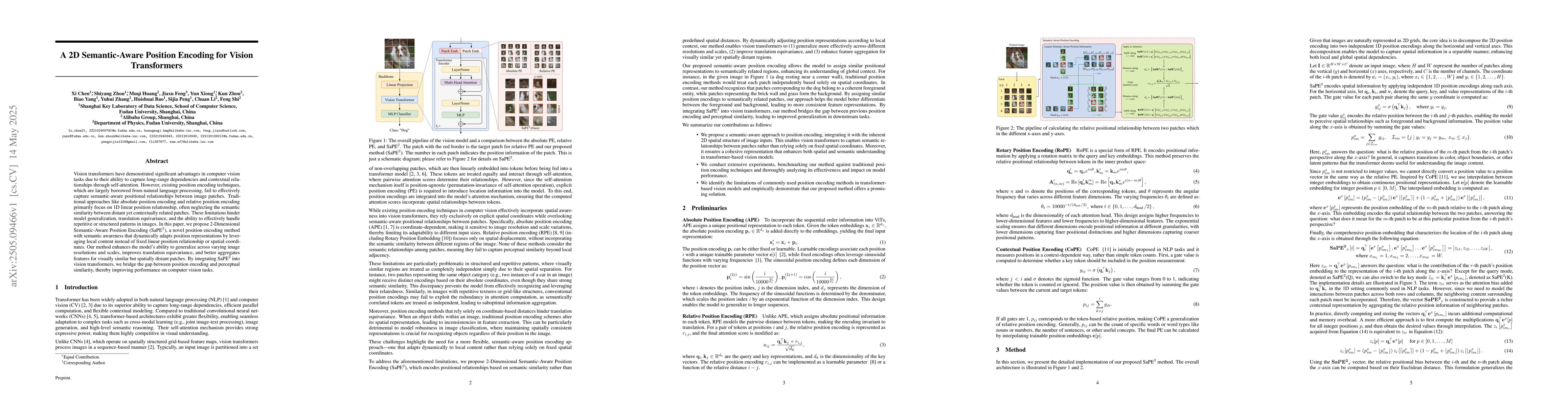 A new position encoding method called 2D Semantic-Aware Position Encoding (SaPE^2) is proposed to improve the performance of vision transformers on computer vision tasks by capturing semantic-aware positional relationships between image patches.
