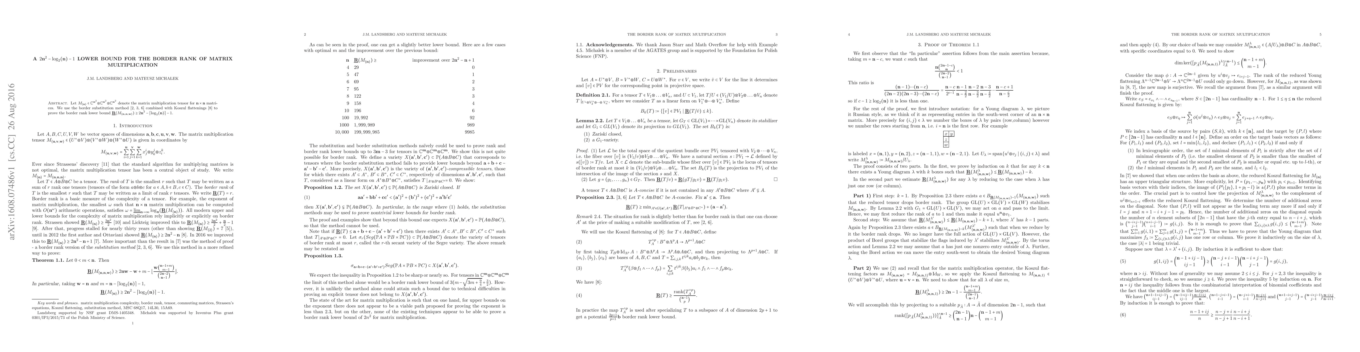 This research establishes a lower bound of $2n^2-log(n)-1$ for the border rank of matrix multiplication, which has implications for understanding the complexity of algorithms in linear algebra.