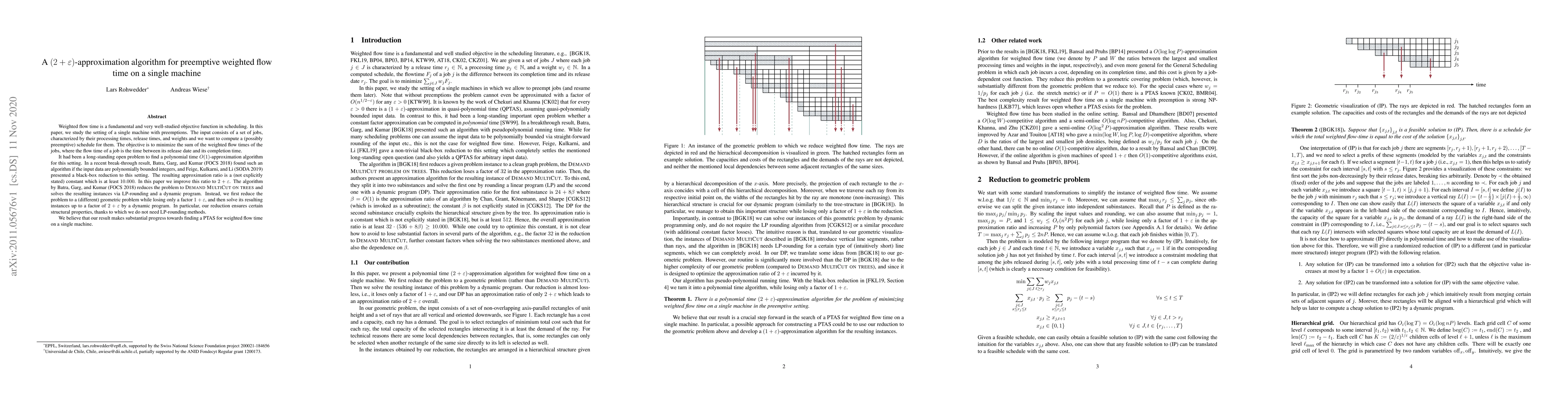 This paper presents a $(2+\varepsilon)$-approximation algorithm for minimizing weighted flow time on a single machine with preemptions, improving upon previous results. It reduces the problem to a geometric problem and solves it using a dynamic program, avoiding LP-rounding methods and achieving better approximation ratios.