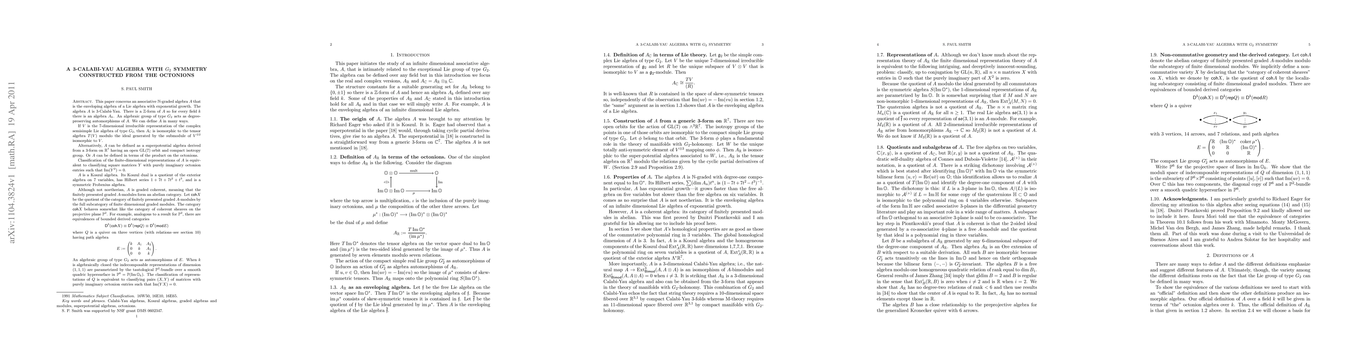 Researchers constructed a 3-Calabi-Yau algebra with G_2 symmetry from the octonions, revealing its connection to finite-dimensional representations of complex semisimple Lie algebras and its properties as a Koszul algebra.