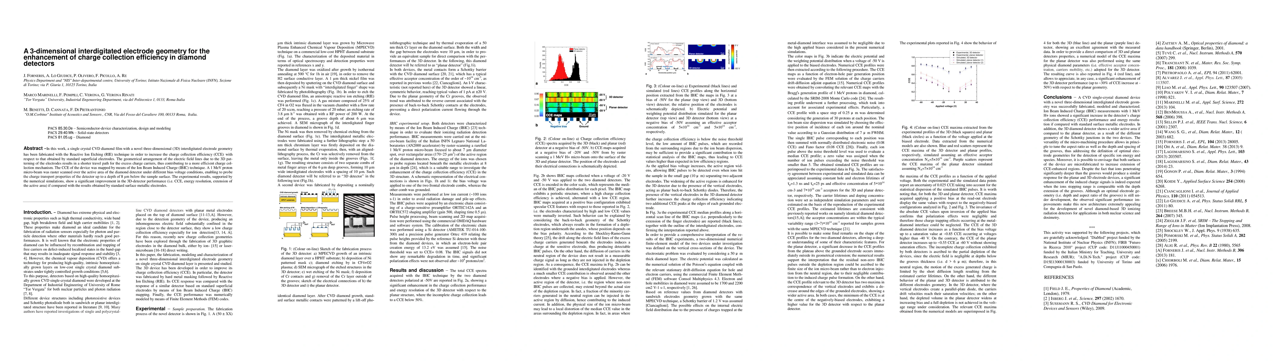 Researchers created a 3D diamond detector with improved charge collection efficiency using interdigitated electrodes, resulting in better performance compared to traditional surface metallic electrodes.