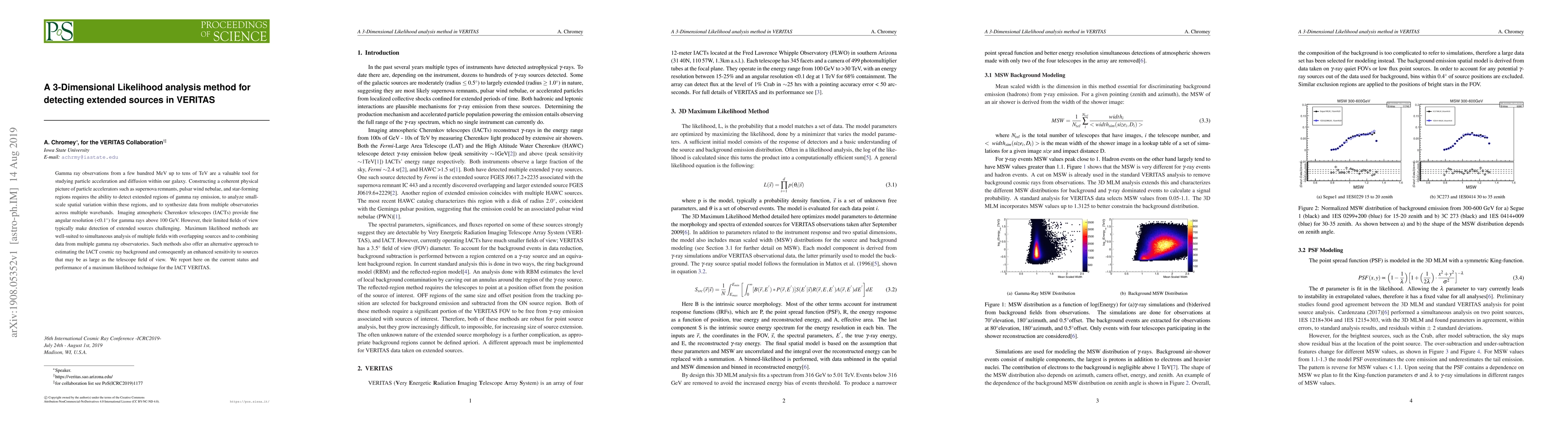 This paper presents a 3-dimensional likelihood analysis method for detecting extended gamma-ray sources using the VERITAS Imaging Atmospheric Cherenkov Telescopes. The method aims to improve the detection of extended regions and enhance sensitivity to large sources by combining data from multiple observatories.