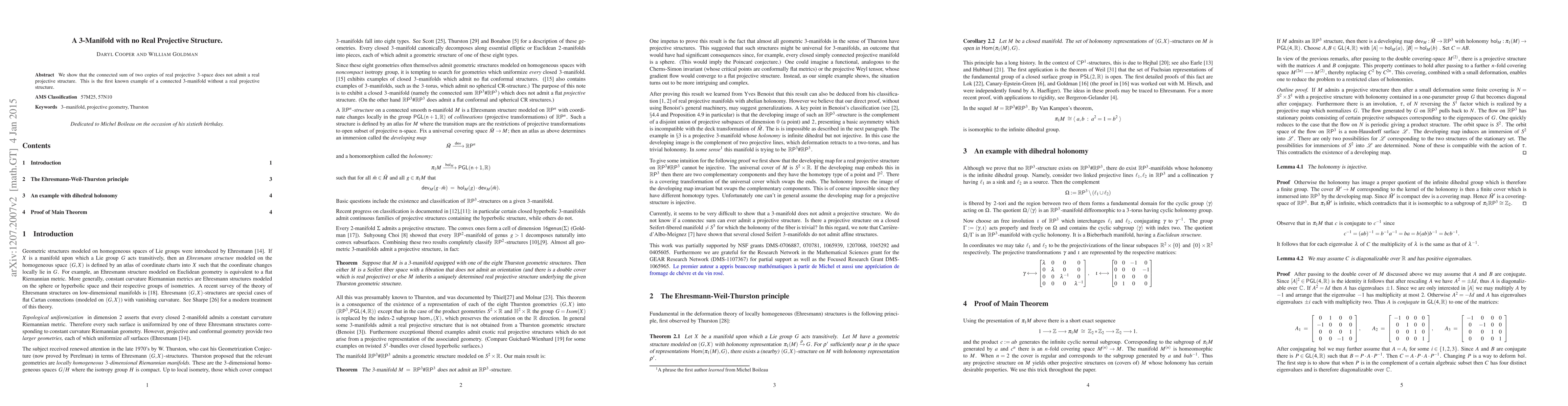 We show that the connected sum of two copies of real projective 3-space does not admit a real projective structure. This is the first known example of a connected 3-manifold without a real projective structure.