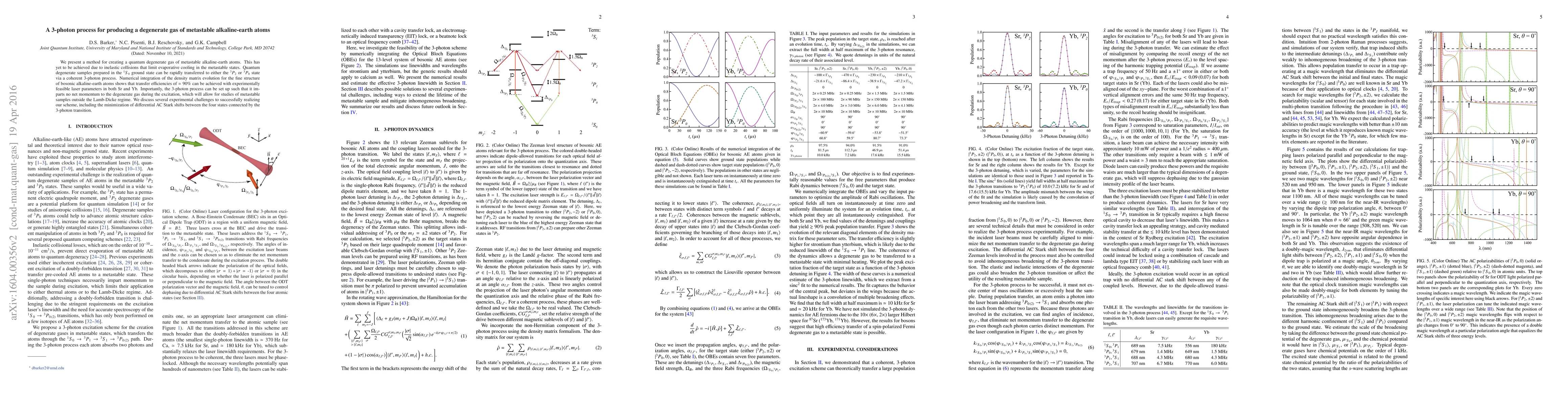 This paper proposes a method for generating a quantum degenerate gas of metastable alkaline-earth atoms using a coherent 3-photon process, achieving transfer efficiencies of around 90% with minimal net momentum imparted, enabling studies outside the Lamb-Dicke regime. Challenges include minimizing differential AC Stark shifts during the transition.