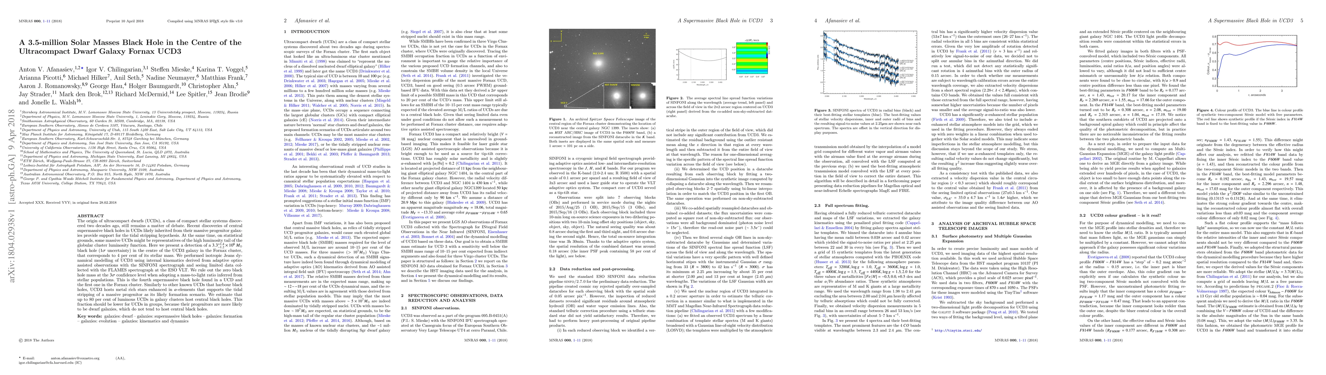 This paper reports the discovery of a $3.3^{+1.4}_{-1.2}\times10^6\,M_{\odot}$ supermassive black hole in the center of Fornax UCD3, supporting the tidal stripping hypothesis for ultracompact dwarfs' formation. The findings suggest that up to 80% of luminous UCDs in clusters may host central black holes.