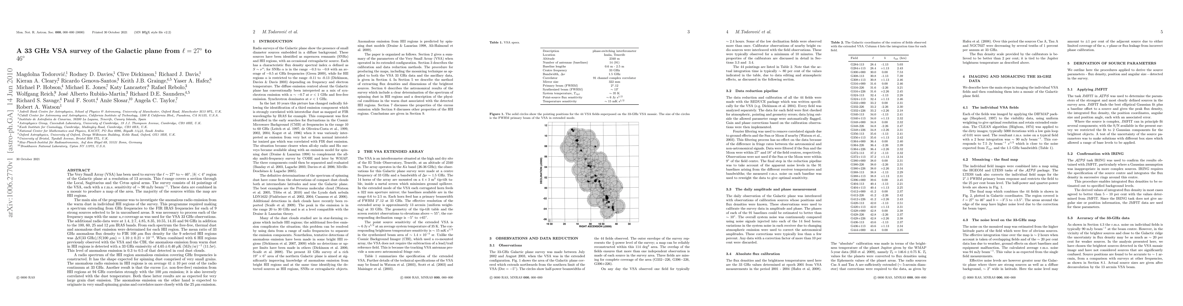 The VSA conducted a 33 GHz survey of the Galactic plane between 27 to 46 degrees, revealing HII regions as the primary sources. The study detected anomalous radio emission from warm dust in nine HII regions, finding an average anomalous emission at 33 GHz to FIR 100 micron flux density ratio of 1.10x10^(-4), confirming anomalous emission at 11.5{\sigma} significance.