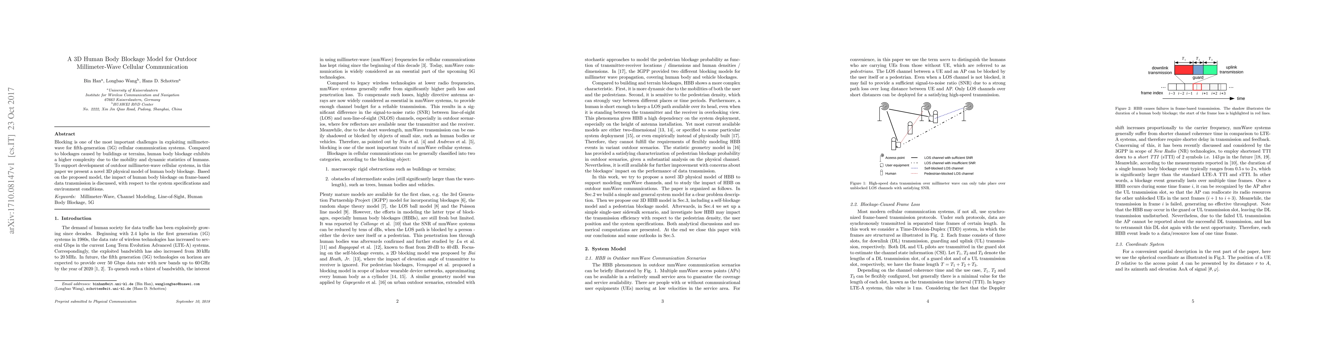 This paper introduces a novel 3D physical model to analyze human body blockage in outdoor millimeter-wave cellular communication, addressing the complexities due to human mobility. It discusses the model's impact on frame-based data transmission under varying system specifications and environmental conditions.
