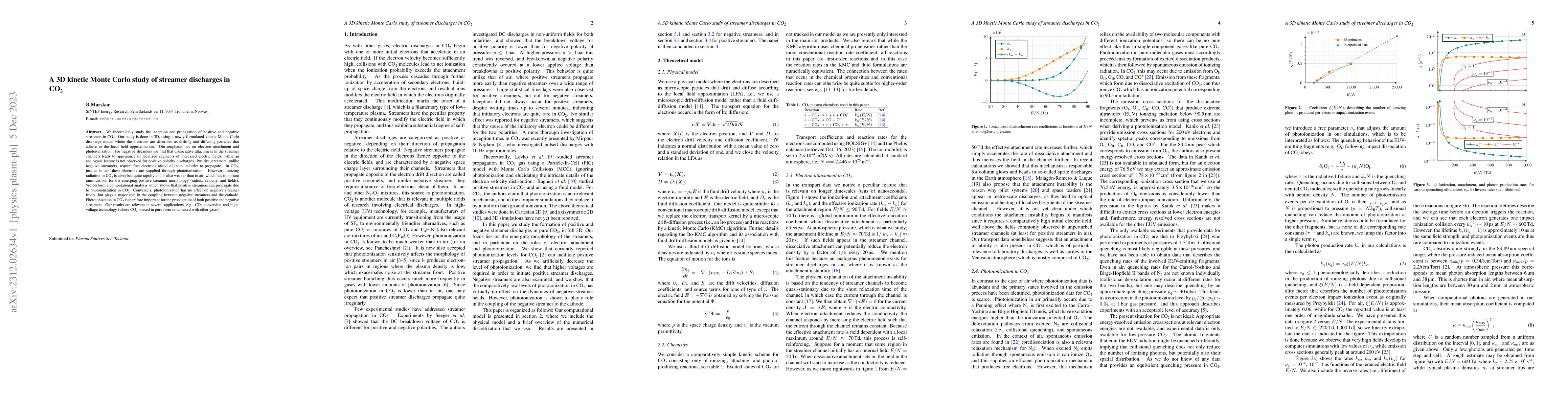 This research employs a 3D kinetic Monte Carlo model to study the behavior of positive and negative streamers in CO$_2$, focusing on electron attachment and photoionization. It finds that negative streamers exhibit localized increased electric fields due to dissociative attachment, while positive streamers require pre-existing electrons for propagation, supplied by photoionization, which is less effective in CO$_2$ compared to air.