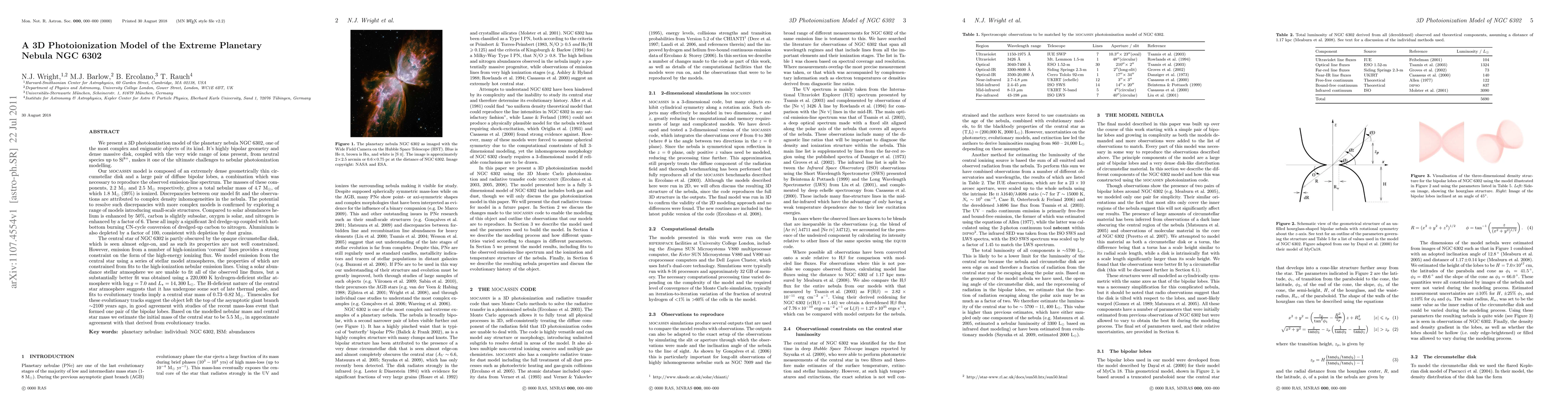 A 3D photoionization model of NGC 6302 reveals a dense circumstellar disk and bipolar lobes, suggesting complex density inhomogeneities and a late thermal pulse in the central star.