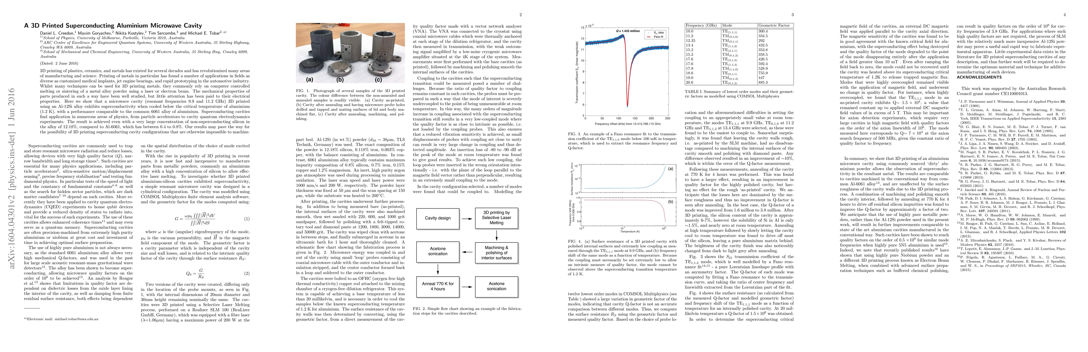 Researchers successfully 3D printed a superconducting aluminum microwave cavity with improved performance compared to traditional alloys, paving the way for the creation of complex superconducting structures.