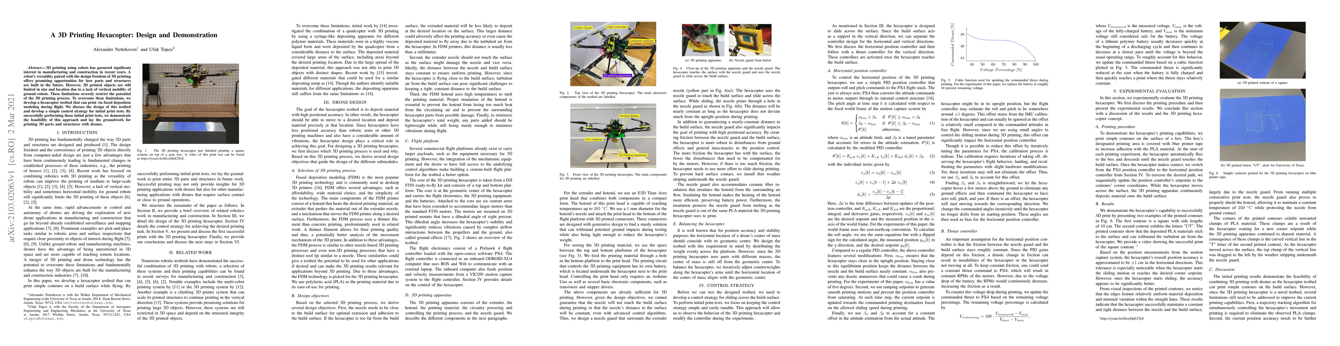 This paper presents the design and demonstration of a hexacopter drone capable of performing 3D printing via fused deposition modeling while airborne. The study outlines the testbed's design and a simple control strategy, successfully showing the potential for vertical mobility in 3D printing applications.
