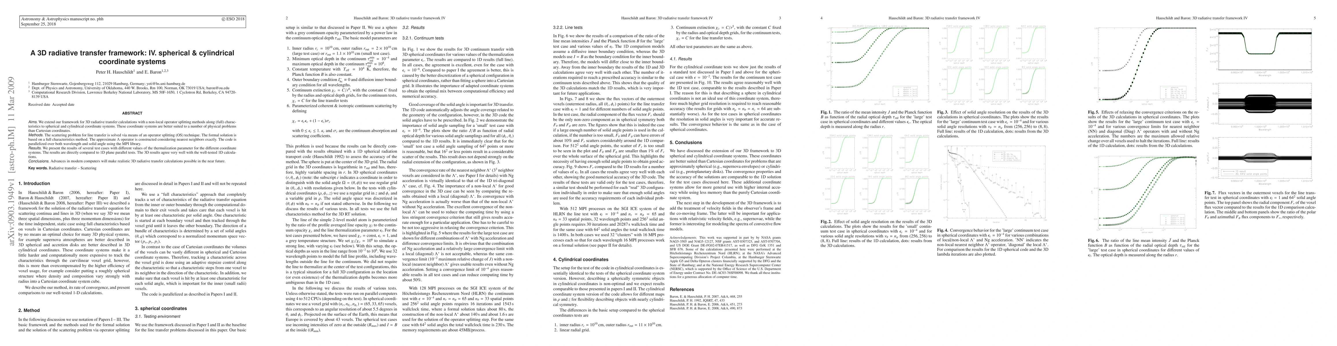 This research paper extends a 3D radiative transfer framework to spherical and cylindrical coordinate systems, improving calculations for certain physical problems.