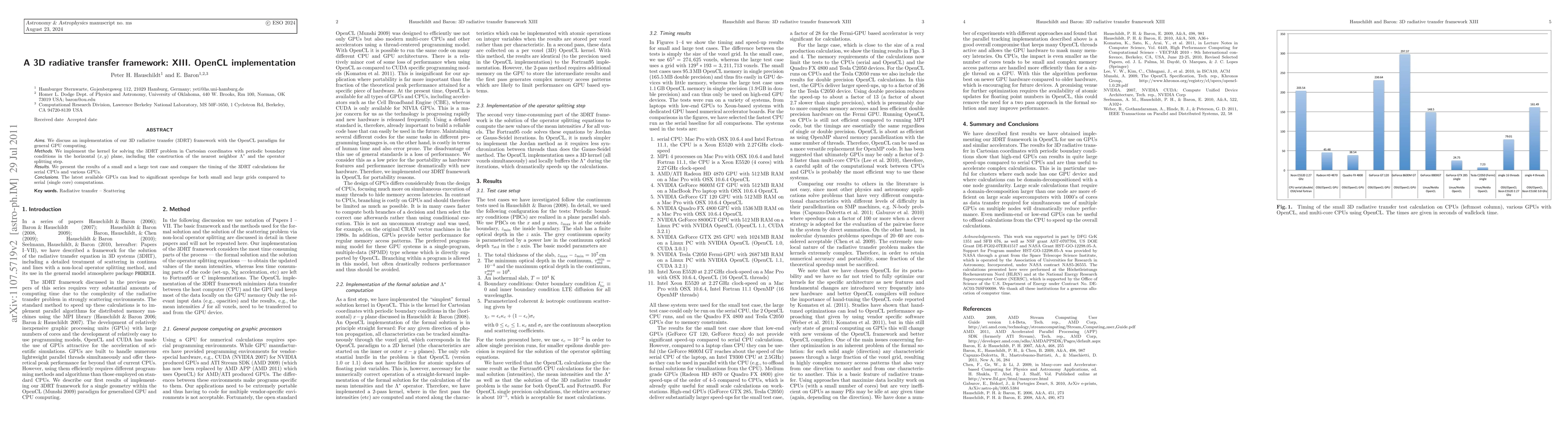 The paper presents an OpenCL implementation of a 3D radiative transfer framework, showcasing its portability and efficiency on GPUs for complex calculations in astrophysics.