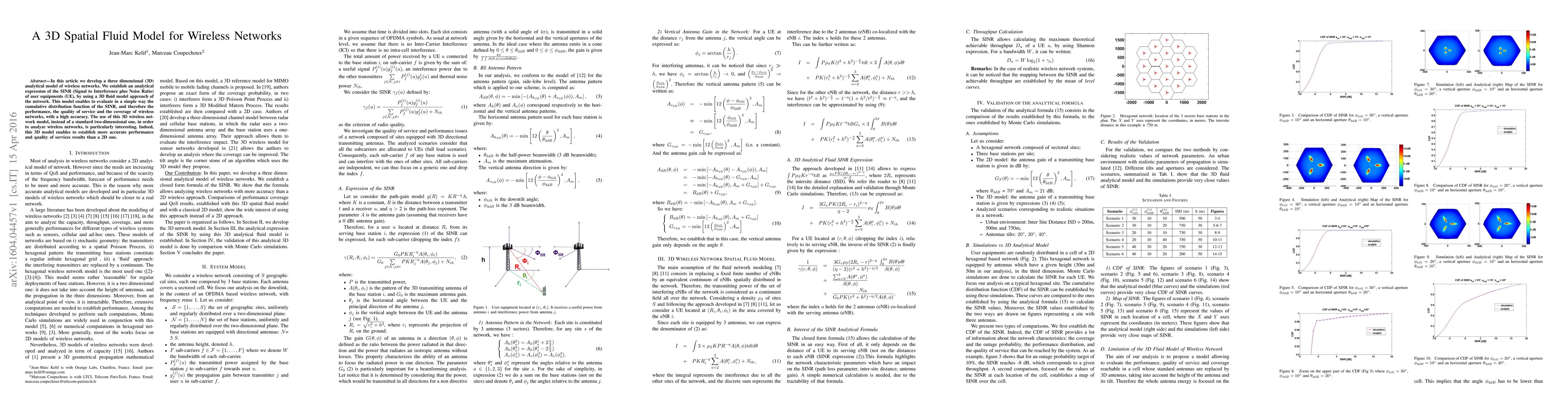 This paper introduces a 3D analytical model for wireless networks, providing an expression for SINR using a 3D fluid model. This advanced model offers high-accuracy evaluations of performance, quality of service, and coverage, outperforming traditional 2D models.