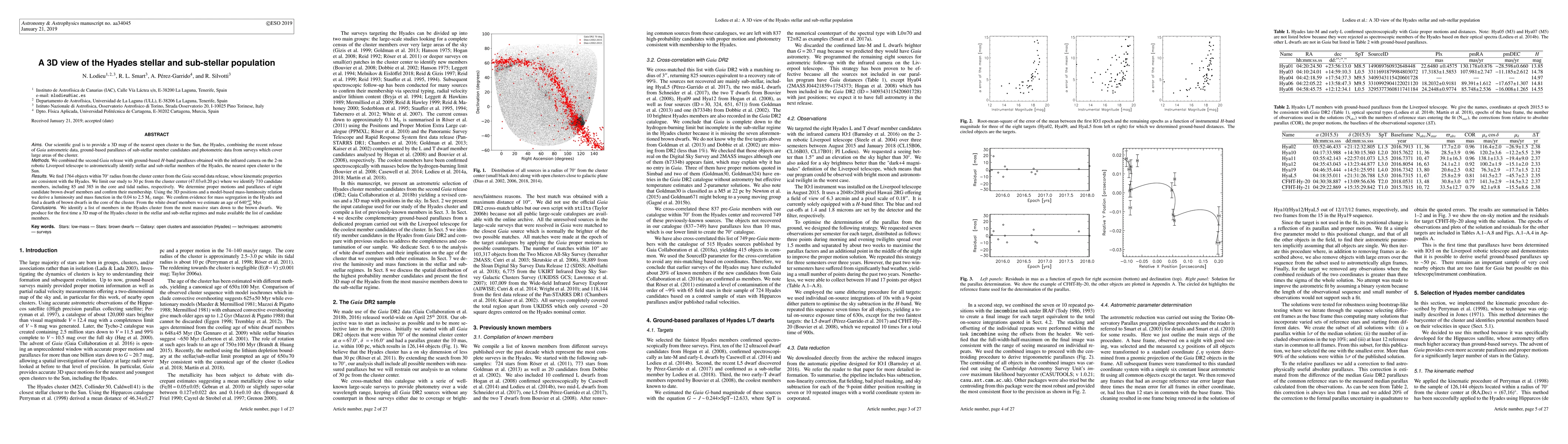 This paper provides a 3D map of the Hyades cluster using Gaia data, ground-based parallaxes, and photometric surveys, identifying 710 candidate members within 30 pc. It confirms mass segregation and a lack of brown dwarfs in the cluster core, estimating an age of 640 Myr.
