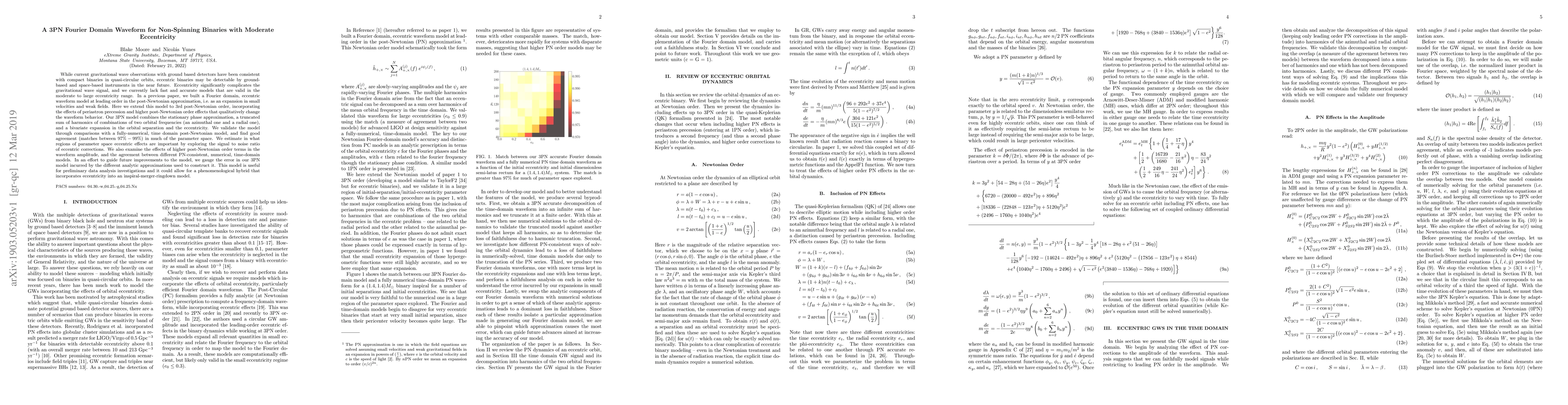 The research extends a Fourier domain waveform model for non-spinning binaries with moderate eccentricity to 3PN order, combining harmonic decomposition, stationary phase approximation, and post-Newtonian theory.