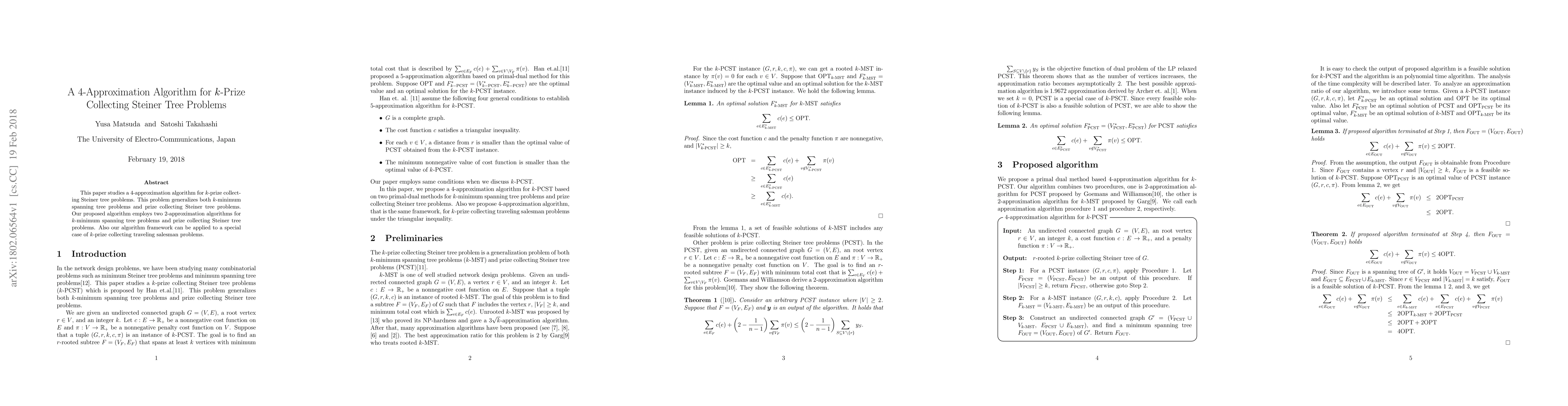 This paper presents a 4-approximation algorithm for k-prize collecting Steiner tree problems, generalizing k-minimum spanning tree and prize collecting Steiner tree problems. The proposed algorithm leverages two existing 2-approximation algorithms for the subproblems and can also apply to a special case of k-prize collecting traveling salesman problems.