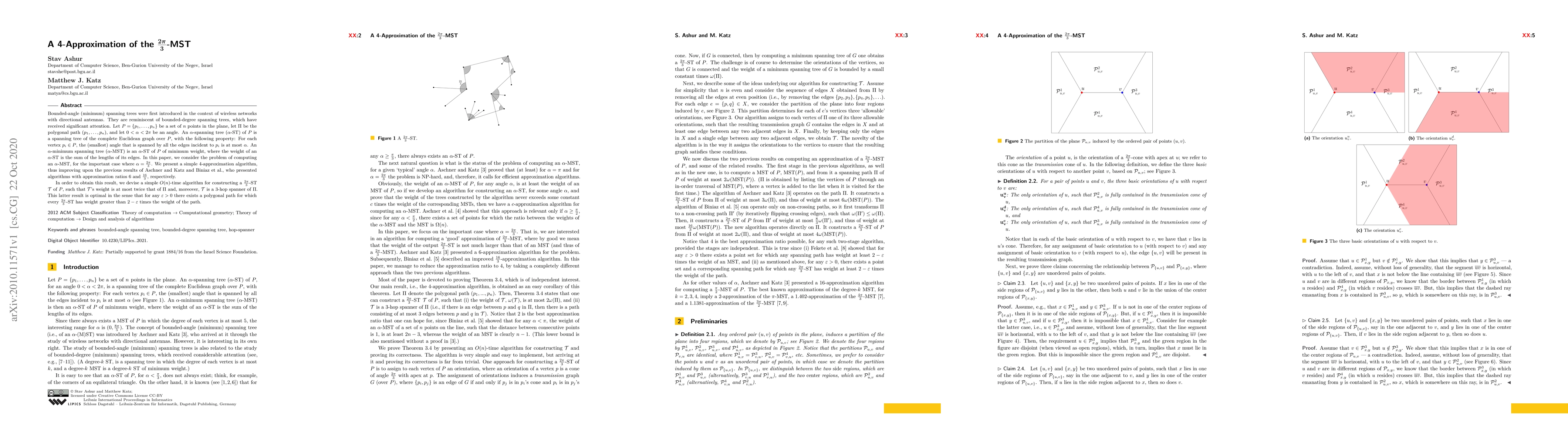 Researchers have developed a 4-approximation algorithm to find the minimum spanning tree of a set of points in the plane, constrained to span no more than a specific angle, improving upon previous results.