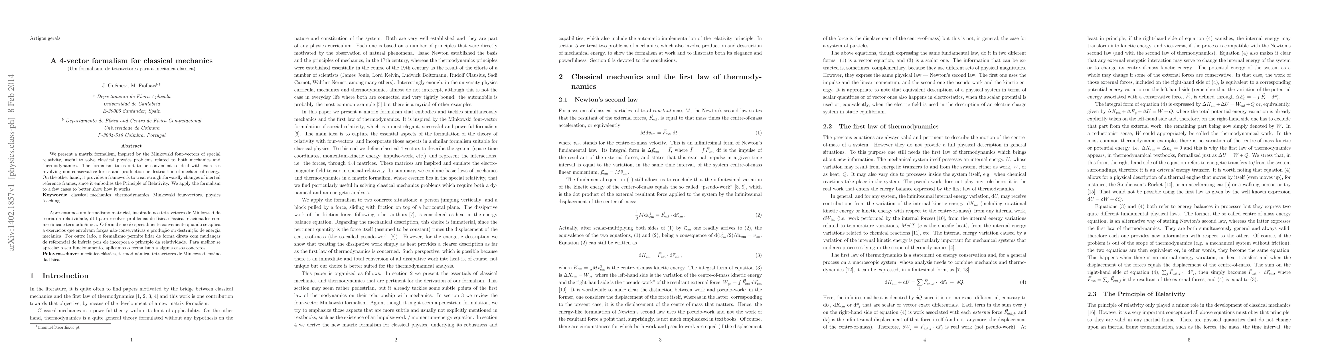 We present a matrix formalism, inspired by the Minkowski four-vectors of special relativity, useful to solve classical physics problems related to both mechanics and thermodynamics. The formalism turns out to be convenient to deal with exercises involving non-conservative forces and production or destruction of mechanical energy. On the other hand, it provides a framework to treat straightforwardly changes of inertial reference frames, since it embodies the Principle of Relativity. We apply the formalism to a few cases to better show how it works.