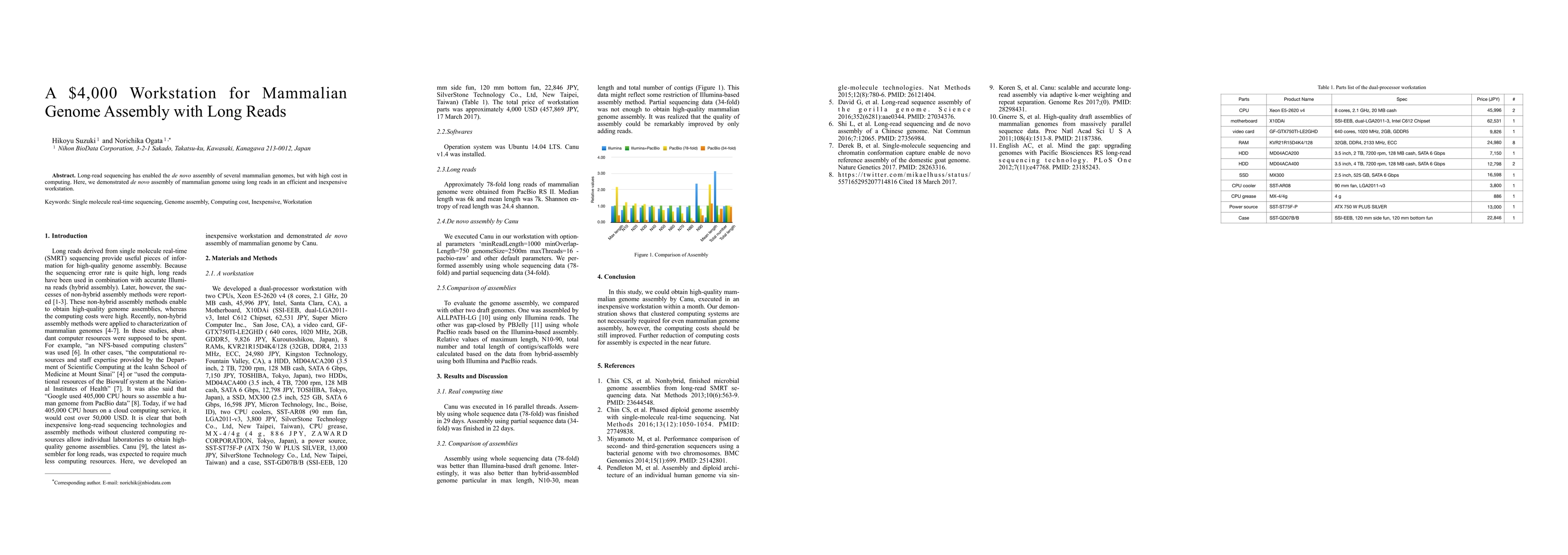 Summary: This study presents an affordable $4,000 workstation that successfully enables the de novo assembly of mammalian genomes using long-read sequencing, significantly reducing the computational costs traditionally associated with such projects.