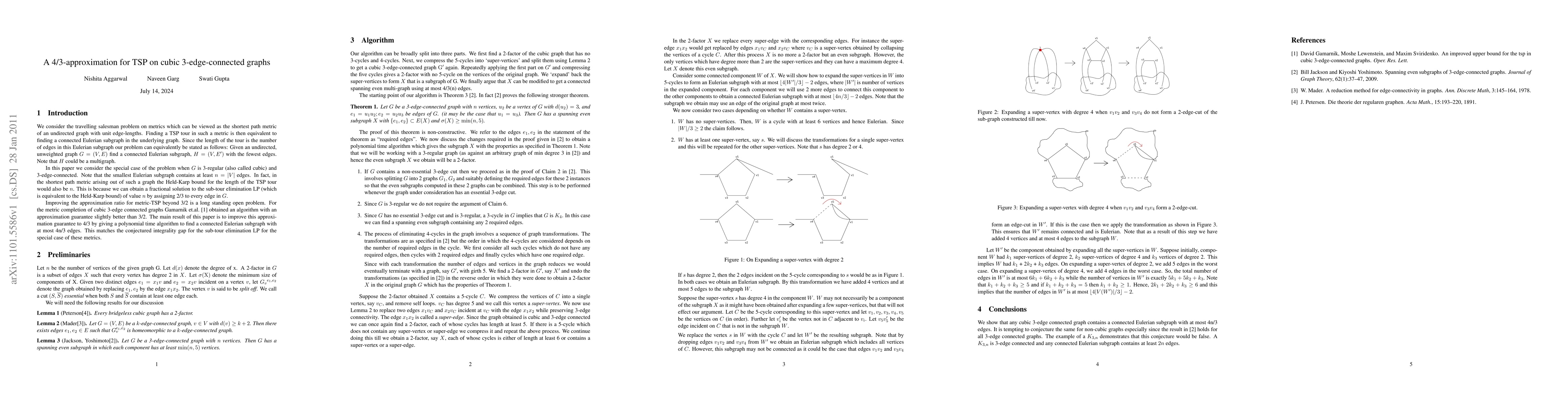Summary: This paper presents a polynomial time 4/3-approximation algorithm for the Traveling Salesman Problem (TSP) on metrics derived from cubic 3-edge-connected graphs, offering a significant improvement over previous methods. The algorithm ensures efficient computation for these specific graph structures.