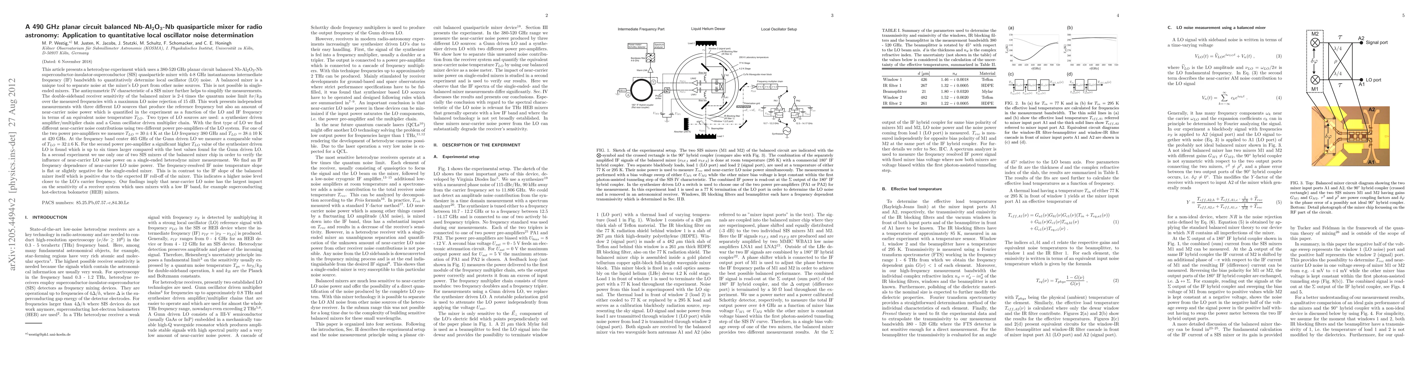This article presents a heterodyne experiment which uses a 380-520 GHz planar circuit balanced Nb-$\mathrm{Al_2O_3}$-Nb superconductor-insulator-superconductor (SIS) quasiparticle mixer with 4-8 GHz instantaneous intermediate frequency (IF) bandwidth to quantitatively determine local oscillator (LO) noise. A balanced mixer is a unique tool to separate noise at the mixer's LO port from other noise sources. This is not possible in single-ended mixers. The antisymmetric IV characteristic of a SIS mixer further helps to simplify the measurements. The double-sideband receiver sensitivity of the balanced mixer is 2-4 times the quantum noise limit $h\nu/k_B$ over the measured frequencies with a maximum LO noise rejection of 15 dB. This work presents independent measurements with three different LO sources that produce the reference frequency but also an amount of near-carrier noise power which is quantified in the experiment as a function of the LO and IF frequency in terms of an equivalent noise temperature $T_{LO}$. In a second experiment we use only one of two SIS mixers of the balanced mixer chip, in order to verify the influence of near-carrier LO noise power on a single-ended heterodyne mixer measurement. We find an IF frequency dependence of near-carrier LO noise power. The frequency-resolved IF noise temperature slope is flat or slightly negative for the single-ended mixer. This is in contrast to the IF slope of the balanced mixer itself which is positive due to the expected IF roll-off of the mixer. This indicates a higher noise level closer to the LO's carrier frequency. Our findings imply that near-carrier LO noise has the largest impact on the sensitivity of a receiver system which uses mixers with a low IF band, for example superconducting hot-electron bolometer (HEB) mixers.
