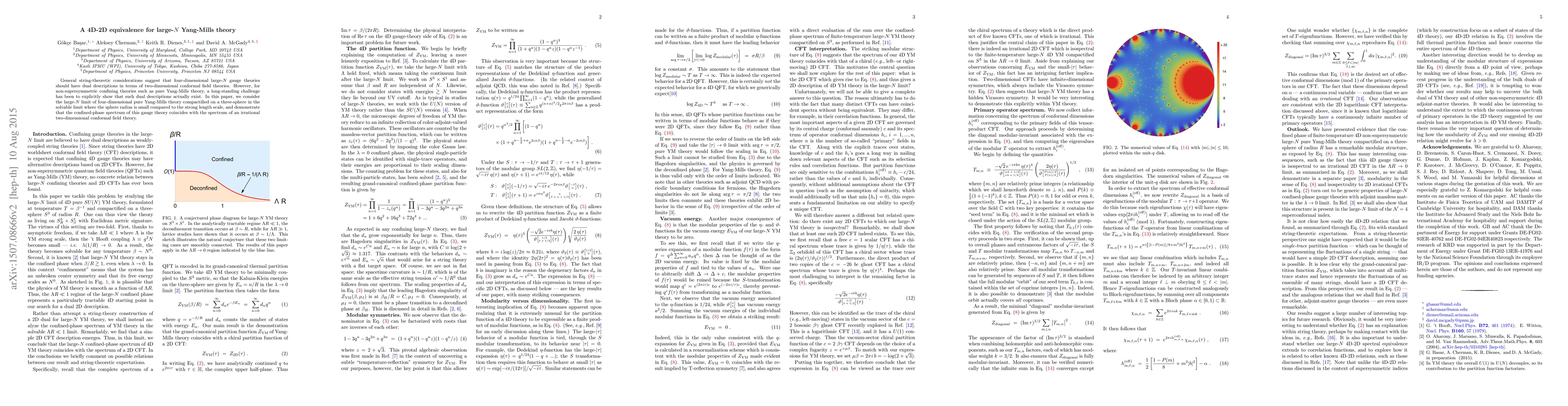 This paper demonstrates that the confined-phase spectrum of four-dimensional large-N pure Yang-Mills theory, when compactified on a small three-sphere, matches that of an irrational two-dimensional conformal field theory, supporting the existence of such dual descriptions.