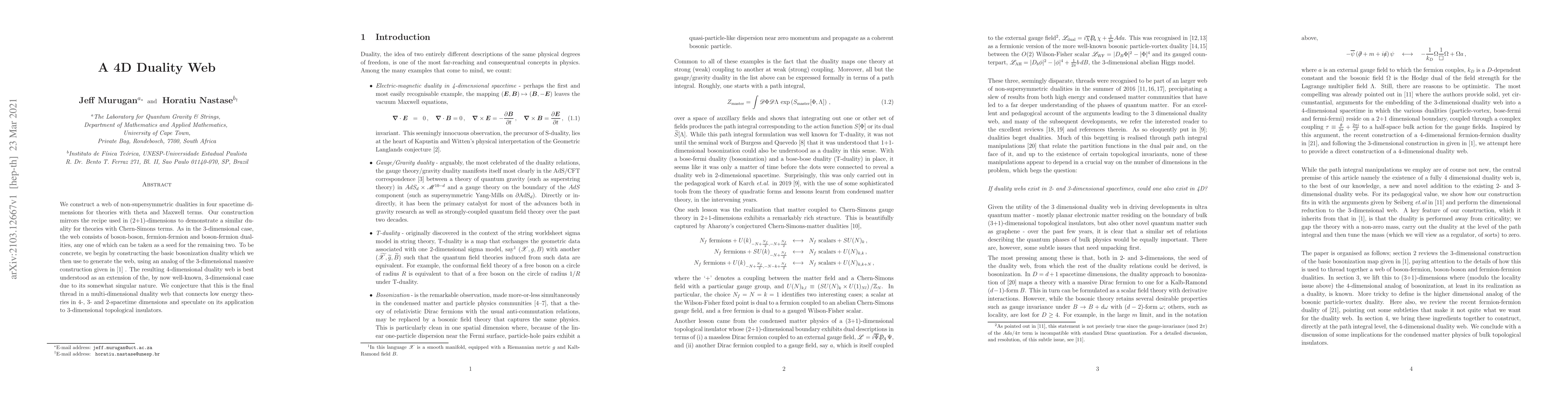 This paper constructs a complex web of non-supersymmetric dualities in 4D for theories involving theta and Maxwell terms, extending a similar 3D duality framework. The authors conjecture that this completes a multi-dimensional duality web linking low-energy theories across different spacetime dimensions, with potential implications for 3D topological insulators.
