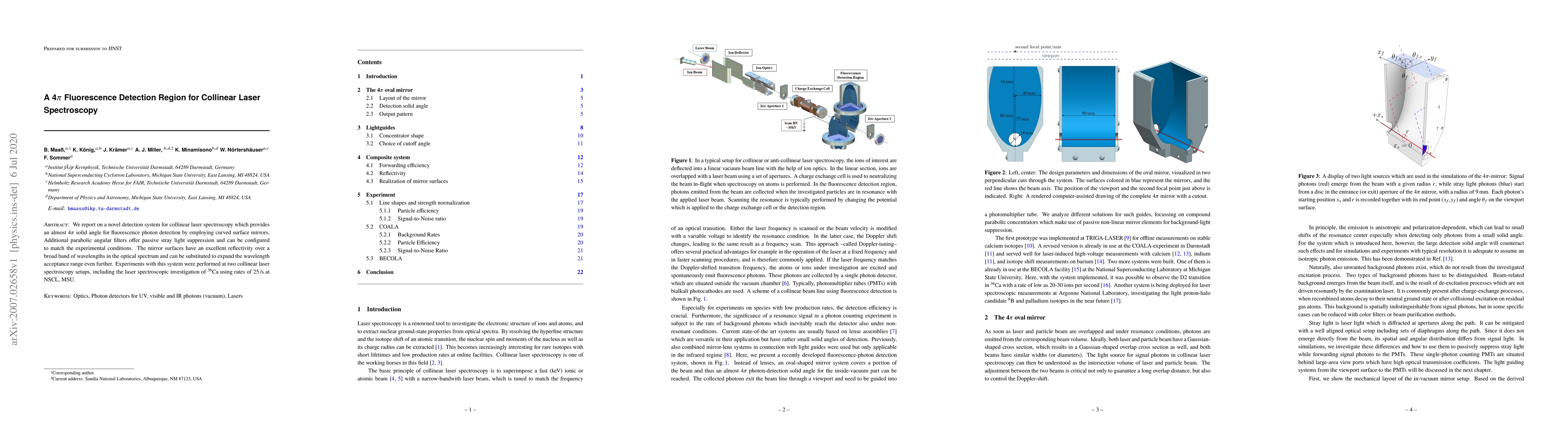 We report on a novel detection system for collinear laser spectroscopy which provides an almost $4\pi$ solid angle for fluorescence photon detection by employing curved surface mirrors. Additional parabolic angular filters offer passive stray light suppression and can be configured to match the experimental conditions. The mirror surfaces have an excellent reflectivity over a broad band of wavelengths in the optical spectrum and can be substituted to expand the wavelength acceptance range even further. Experiments with this system were performed at two collinear laser spectroscopy setups, including the laser spectroscopic investigation of $^{36}$Ca using rates of 25/s at NSCL, MSU.