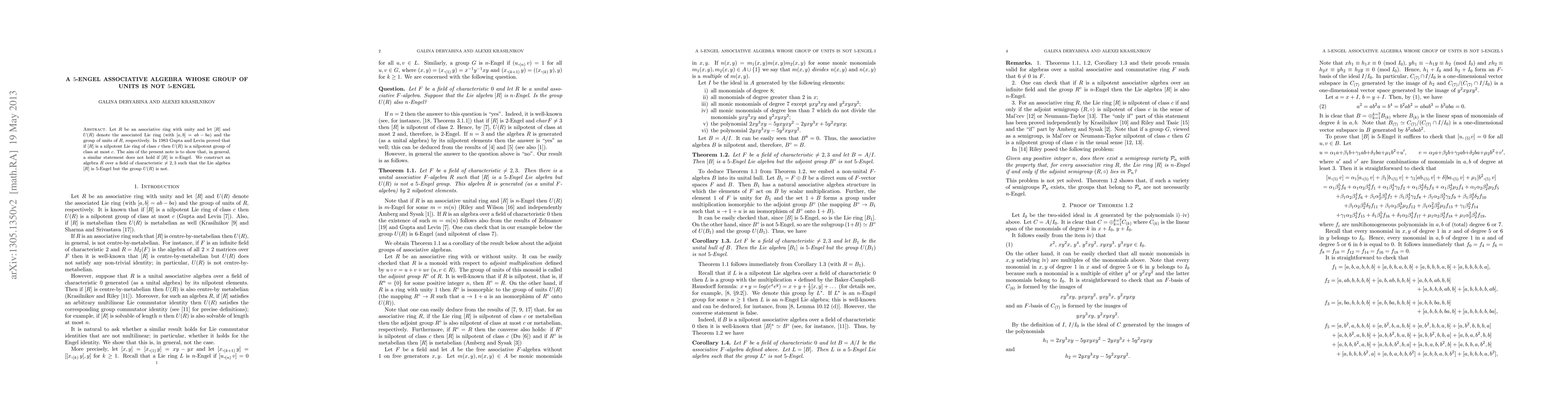 This paper demonstrates the existence of a 5-Engel associative algebra R whose group of units U(R) fails to be a 5-Engel group, challenging the generalization of Gupta and Levin's theorem to n-Engel Lie rings. The constructed algebra highlights the divergence between the properties of Engel Lie algebras and their corresponding unit groups.