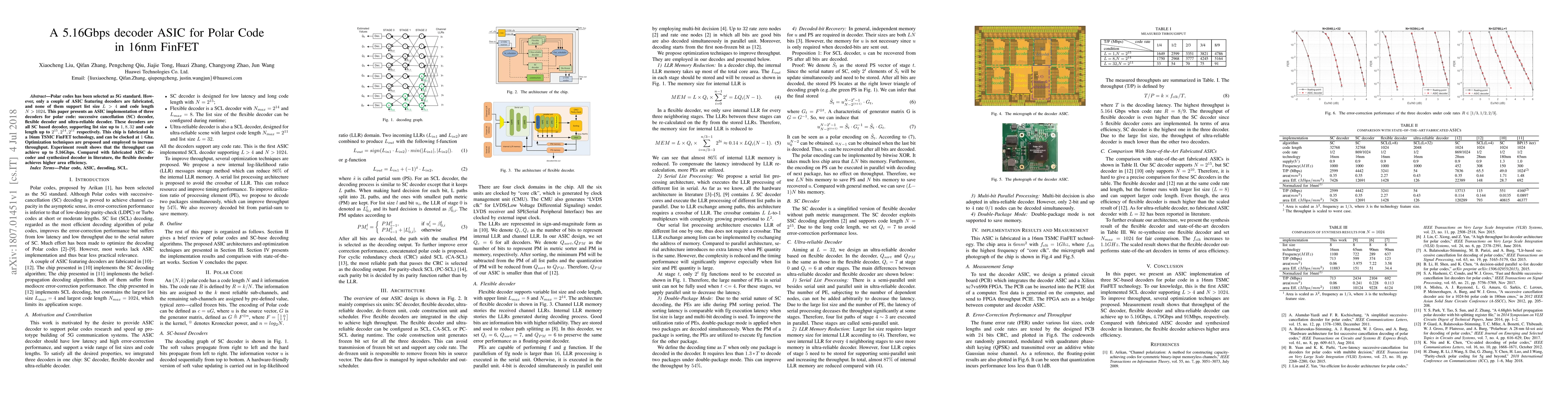 This paper details an ASIC for decoding polar codes, supporting higher list sizes and longer code lengths, fabricated in 16nm FinFET technology, achieving a throughput of 5.16Gbps, and demonstrating higher area efficiency compared to existing decoders.
