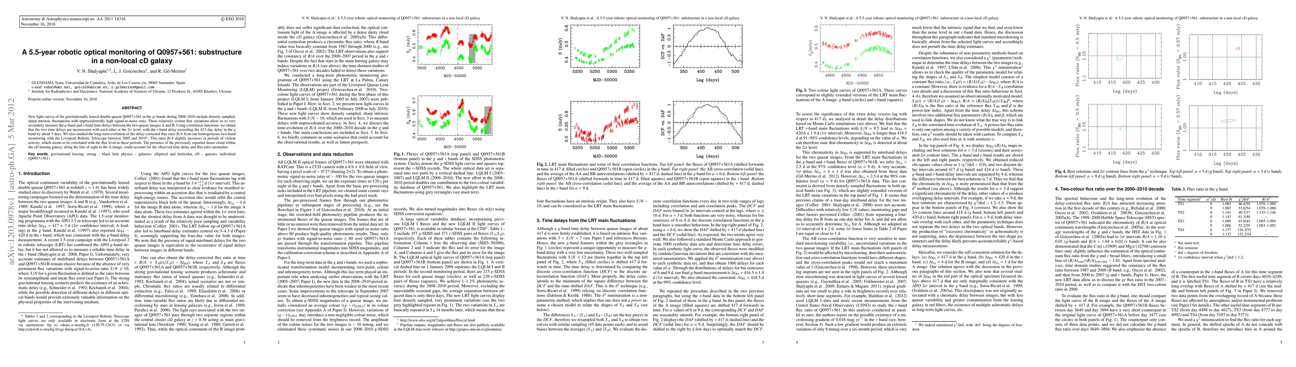This study reports on 5.5 years of robotic optical monitoring of the gravitationally lensed quasar Q0957+561, revealing high-signal fluctuations and precise time delays between its images. The observed discrepancies in g-band and r-band time delays suggest substructure within the lensing cD galaxy.