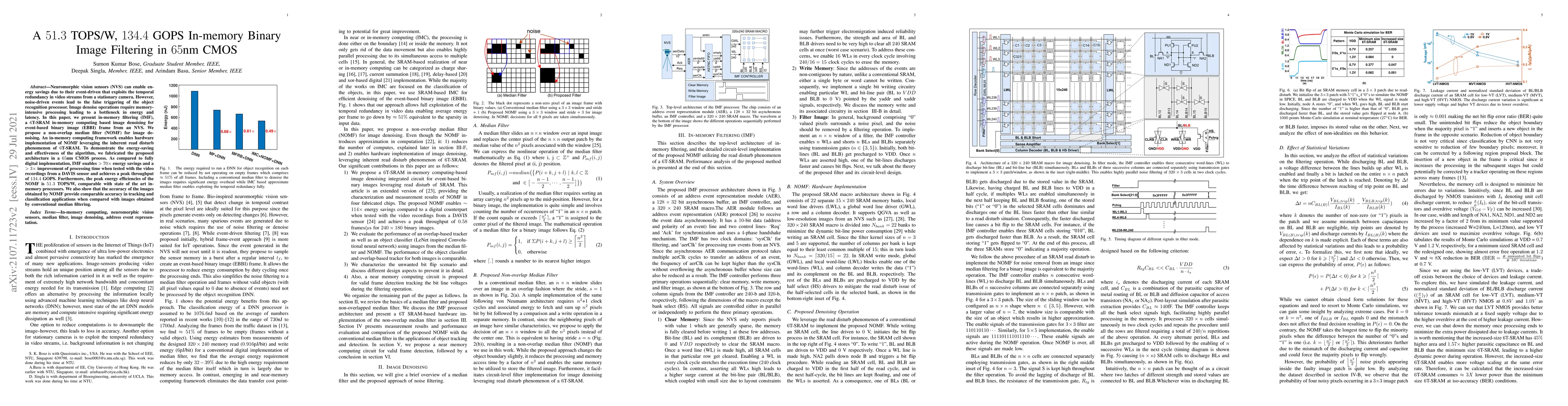 This research paper presents a novel in-memory filtering algorithm that enables 70x energy savings and 3x faster processing time for image denoising on neuromorphic vision sensors.