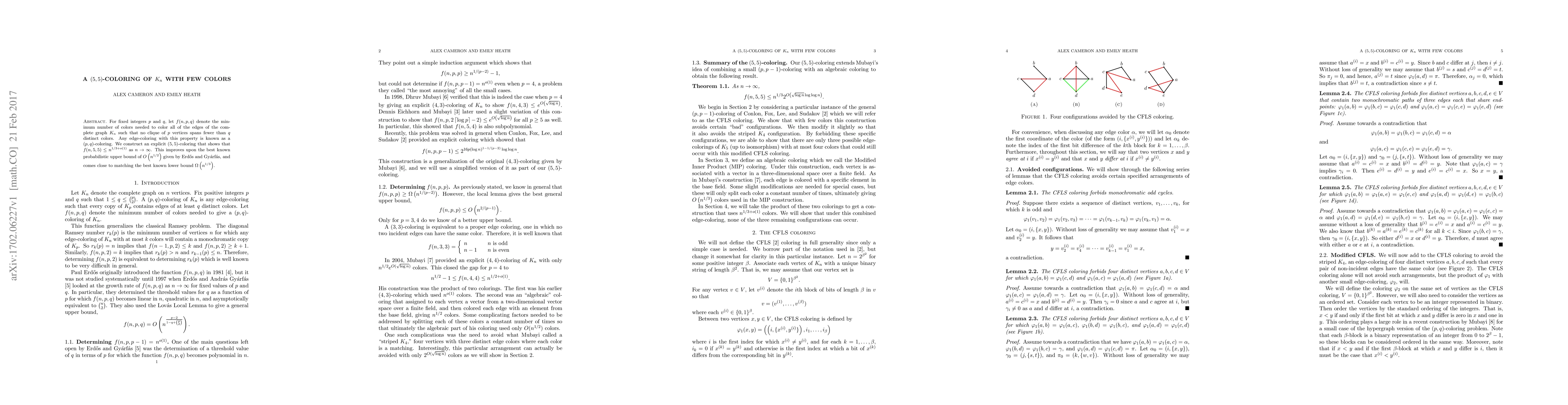 For fixed integers $p$ and $q$, let $f(n,p,q)$ denote the minimum number of colors needed to color all of the edges of the complete graph $K_n$ such that no clique of $p$ vertices spans fewer than $q$ distinct colors. Any edge-coloring with this property is known as a $(p,q)$-coloring. We construct an explicit $(5,5)$-coloring that shows that $f(n,5,5) \leq n^{1/3 + o(1)}$ as $n \rightarrow \infty$. This improves upon the best known probabilistic upper bound of $O\left(n^{1/2}\right)$ given by Erd\H{o}s and Gy\'{a}rf\'{a}s, and comes close to matching the best known lower bound $\Omega\left(n^{1/3}\right)$.