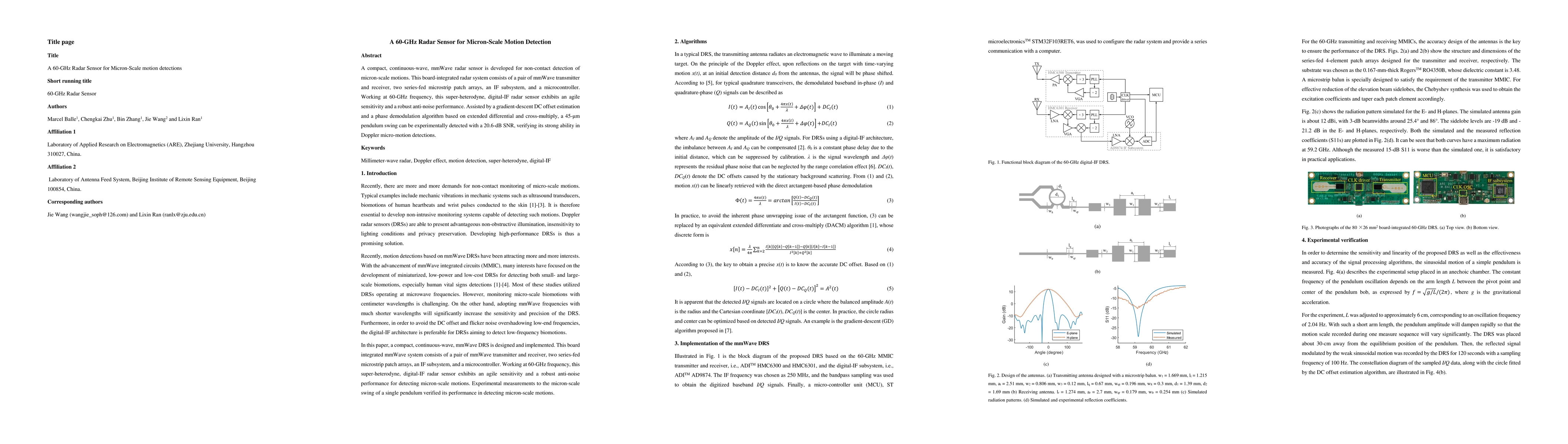 A compact 60-GHz radar sensor detects micron-scale motions with high sensitivity and robust anti-noise performance, capable of detecting a 45-{µ}m pendulum swing.