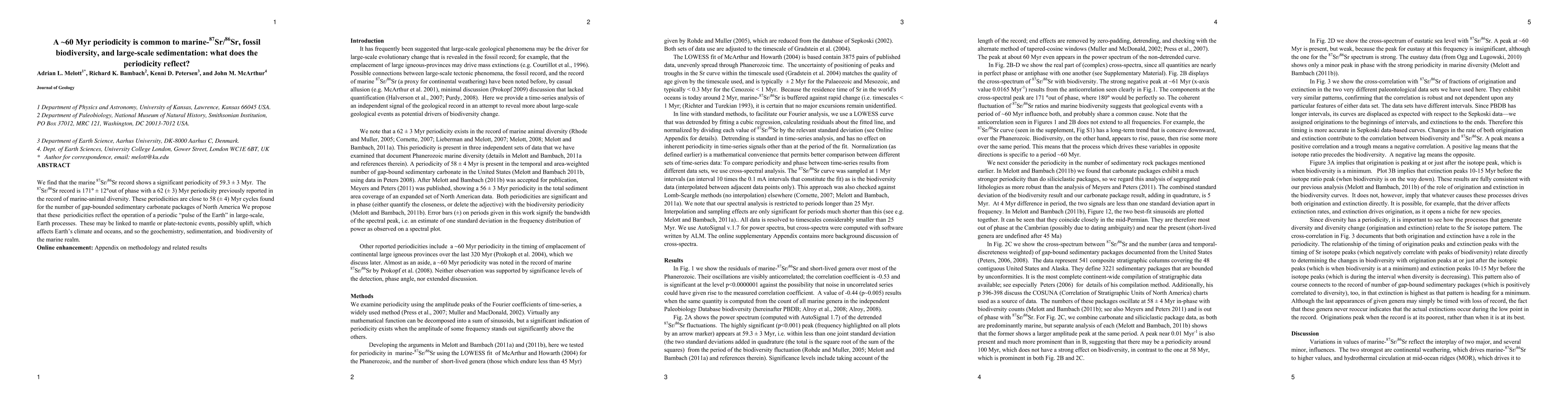 This study identifies a 59.3 Myr periodicity in the marine 87Sr/86Sr record, which correlates with similar periodicities in marine biodiversity and sedimentary cycles, suggesting a common underlying driver, possibly linked to Earth's tectonic activity or solar system dynamics.