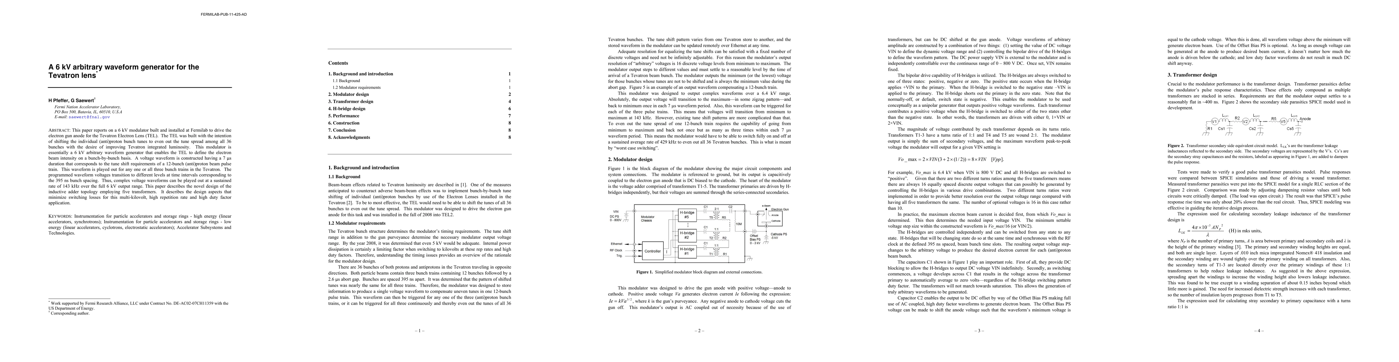This paper details a 6 kV arbitrary waveform generator designed for the Tevatron Electron Lens to improve integrated luminosity by adjusting the electron beam intensity on a bunch-by-bunch basis. The innovative inductive adder topology with five transformers minimizes switching losses for high-rate, high-duty factor applications.