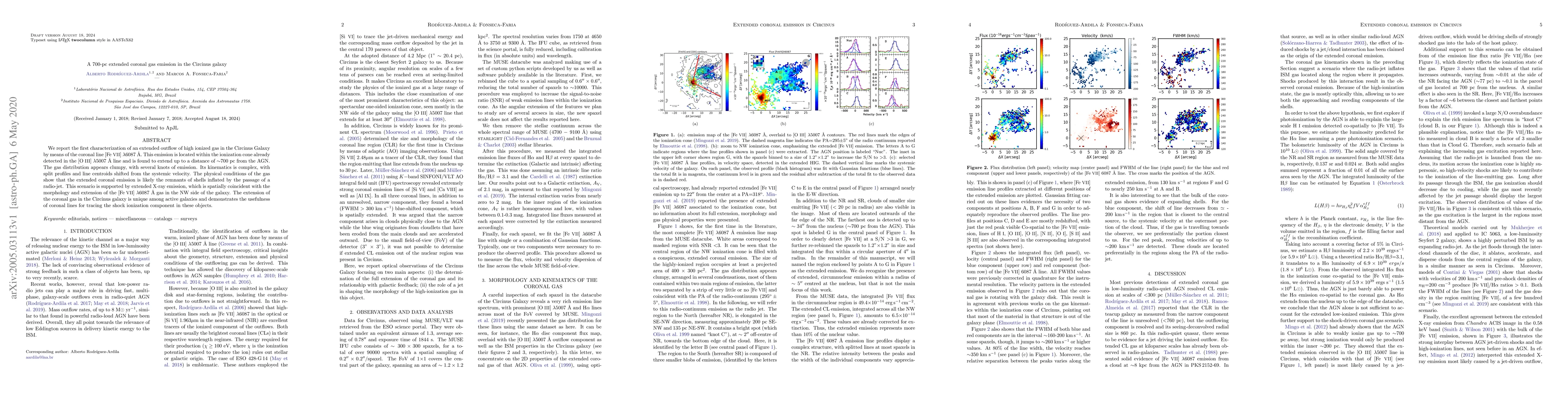This study reveals a 700-parsec outflow of highly ionized gas in the Circinus galaxy, likely shaped by a radio jet, making it the most extensive coronal gas emission observed in an active galaxy. The findings highlight how coronal lines can effectively trace shock-related phenomena in galactic environments.