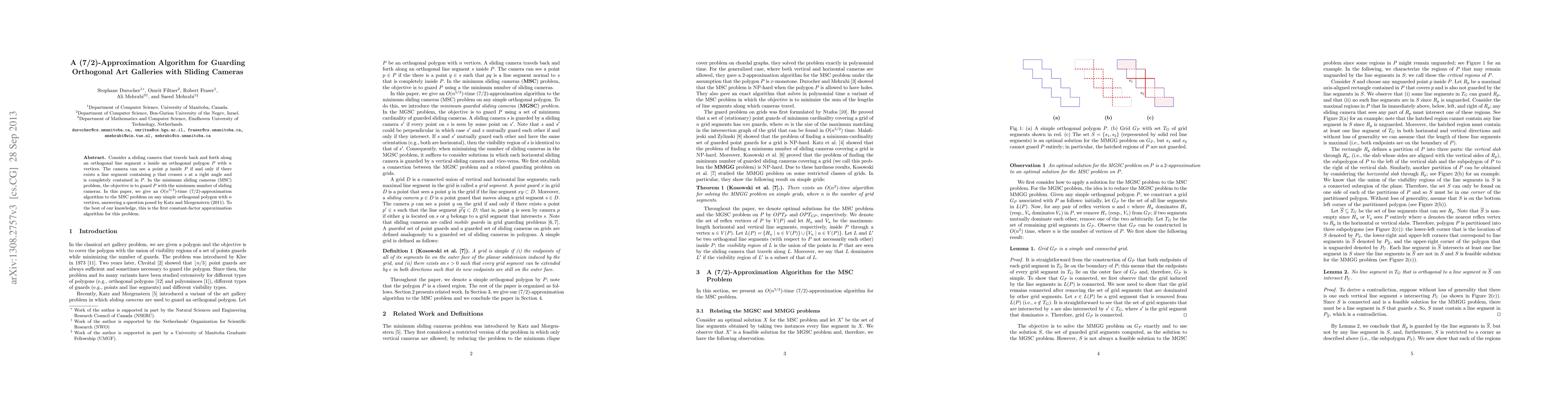 This paper presents an $O(n^{5/2})$-time $(7/2)$-approximation algorithm for the minimum sliding cameras (MSC) problem in orthogonal polygons, providing the first constant-factor approximation solution and addressing a question from Katz and Morgenstern (2011).