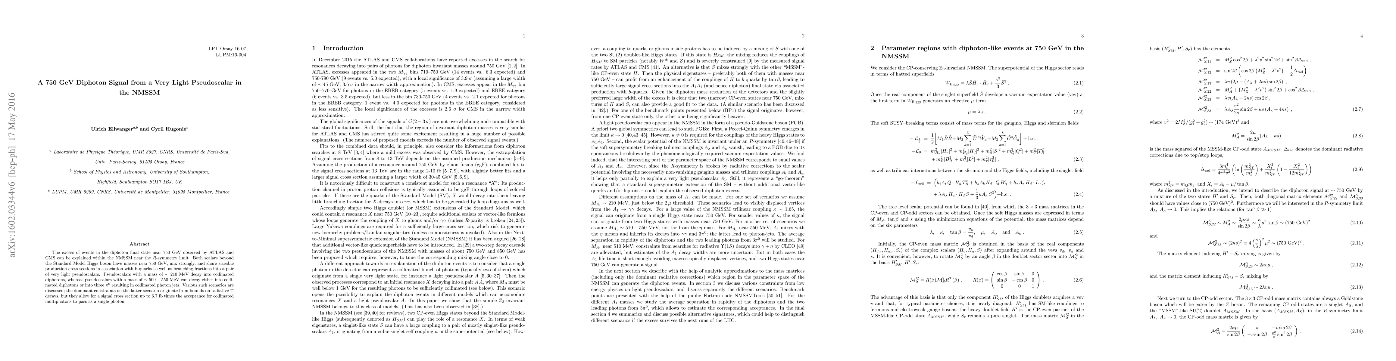 The excess of events in the diphoton final state near 750 GeV observed by ATLAS and CMS can be explained within the NMSSM near the R-symmetry limit. Both scalars beyond the Standard Model Higgs boson have masses near 750 GeV, mix strongly, and share sizeable production cross sections in association with b-quarks as well as branching fractions into a pair of very light pseudoscalars. Pseudoscalars with a mass of ~ 210 MeV decay into collimated diphotons, whereas pseudoscalars with a mass of ~ 500-550 MeV can decay either into collimated diphotons or into three pi^0 resulting in collimated photon jets. Various such scenarios are discussed; the dominant constraints on the latter scenario originate from bounds on radiative Upsilon decays, but they allow for a signal cross section up to 6.7 fb times the acceptance for collimated multiphotons to pass as a single photon.
