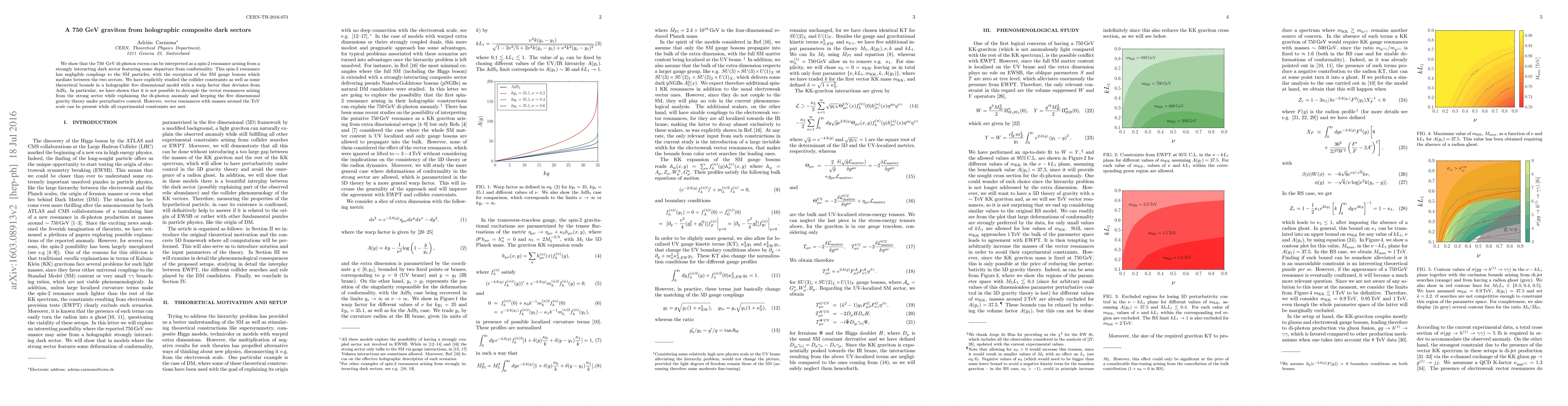 We show that the 750 GeV di-photon excess can be interpreted as a spin-2 resonance arising from a strongly interacting dark sector featuring some departure from conformality. This spin-2 resonance has negligible couplings to the SM particles, with the exception of the SM gauge bosons which mediate between the two sectors. We have explicitly studied the collider constraints as well as some theoretical bounds in a holographic five dimensional model with a warp factor that deviates from AdS$_5$. In particular, we have shown that it is not possible to decouple the vector resonances arising from the strong sector while explaining the di-photon anomaly and keeping the five dimensional gravity theory under perturbative control. However, vector resonances with masses around the TeV scale can be present while all experimental constraints are met.