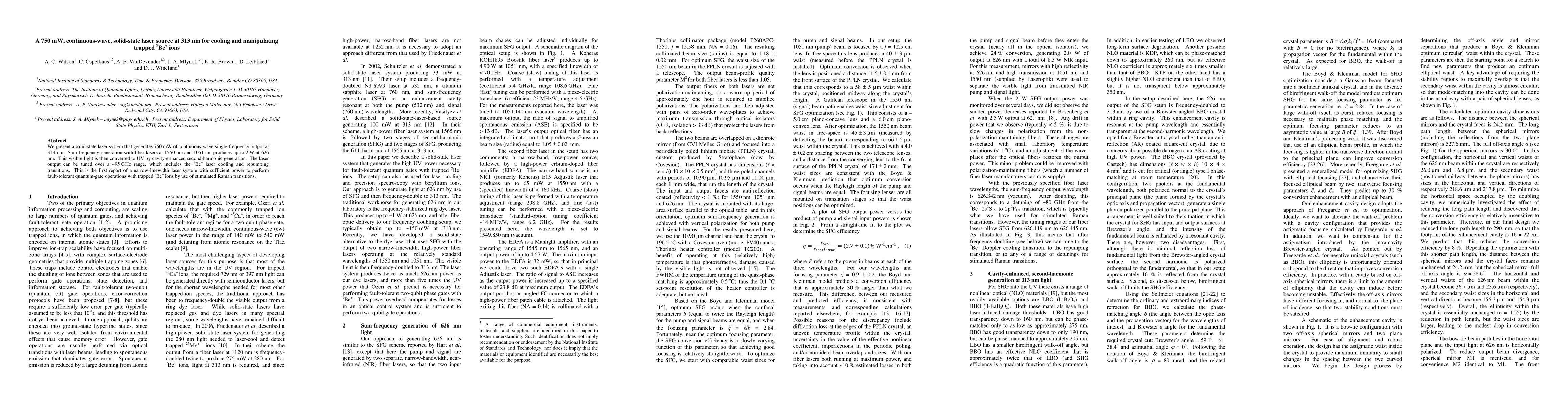 This paper introduces a solid-state laser system generating 750 mW of continuous-wave UV light at 313 nm, enabling cooling and manipulation of trapped 9Be+ ions. The system utilizes sum-frequency generation and second-harmonic generation to achieve the required UV output for quantum-gate operations.