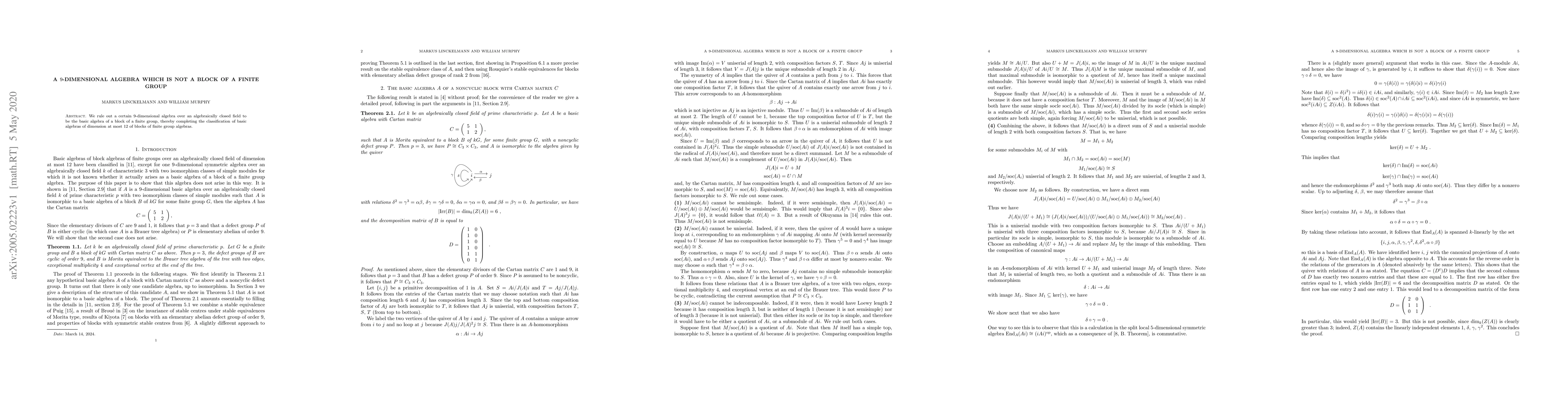 We rule out a certain $9$-dimensional algebra over an algebraically closed field to be the basic algebra of a block of a finite group, thereby completing the classification of basic algebras of dimension at most $12$ of blocks of finite group algebras.