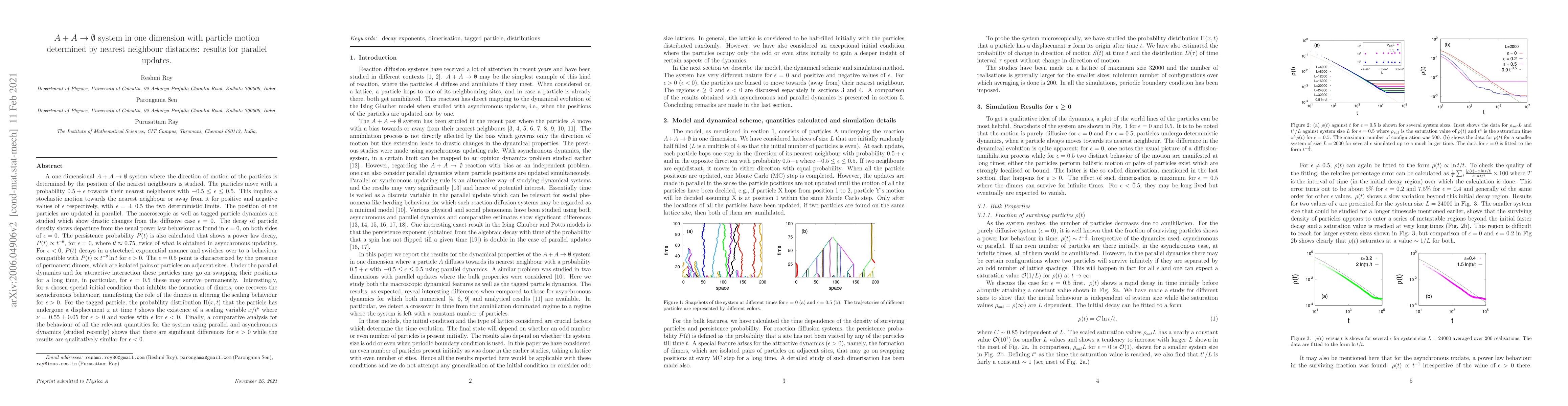 A one dimensional $A+A \to \emptyset$ system where the direction of motion of the particles is determined by the position of the nearest neighours is studied. The particles move with a probability $0.5 + \epsi$ towards their nearest neighbours with $-0.5 \leq \epsi \leq 0.5$. This implies a stochastic motion towards the nearest neighbour or away from it for positive and negative values of $\epsi$ respectively, with $\epsi = \pm ~0.5$ the two deterministic limits. The position of the particles are updated in parallel. The macroscopic as well as tagged particle dynamics are studied which show drastic changes from the diffusive case $\epsi=0$. The decay of particle density shows departure from the usual power law behaviour as found in $\epsi =0$, on both sides of $\epsi =0$ and a scaling regime is obtained for $\epsi > 0$. The $\epsi =0.5$ point is characterized by the presence of dimers, which are isolated pairs of particles in adjacent sites that are never annihilated. The persistence probability is also calculated that decays in a stretched exponential manner for $\epsi < 0$ and switches over to power law behaviour for $\epsi \geq 0$, with different exponents for $\epsi =0$ and $\epsi > 0$. For the tagged particle, the probability distribution $\Pi(x,t)$ that it is at position $x$ at time $t$ shows the existence of a scaling variable $x/t^\nu$ where $\nu = 0.55 \pm 0.05$ for $\epsi > 0$ and varies with $\epsi$ for $\epsi < 0$. Finally, a comparative analysis for the behaviour of all the relevant quantities for the system using parallel and asynchronous dynamics (studied recently) shows that there are significant differences for $\epsi > 0$ while the results are qualitatively similar for $\epsi < 0$.