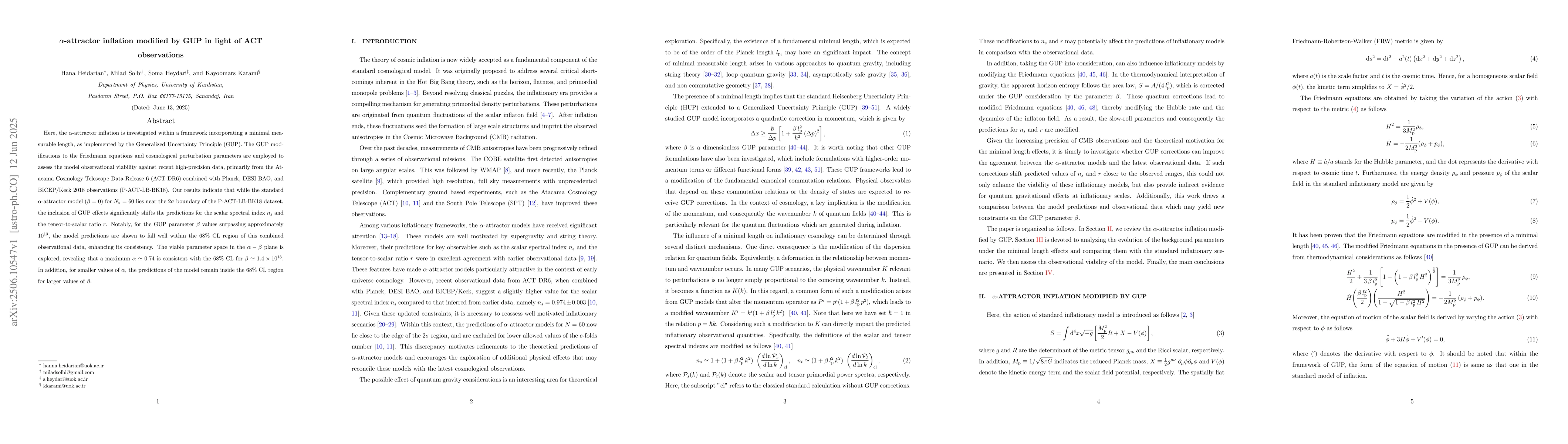 Here, the $\alpha$-attractor inflation is investigated within a framework incorporating a minimal measurable length, as implemented by the Generalized Uncertainty Principle (GUP). The GUP modifications to the Friedmann equations and cosmological perturbation parameters are employed to assess the model observational viability against recent high-precision data, primarily from the Atacama Cosmology Telescope Data Release 6 (ACT DR6) combined with Planck, DESI BAO, and BICEP/Keck 2018 observations (P-ACT-LB-BK18). Our results indicate that while the standard $\alpha$-attractor model ($\beta=0$) for $N_*=60$ lies near the $2\sigma$ boundary of the P-ACT-LB-BK18 dataset, the inclusion of GUP effects significantly shifts the predictions for the scalar spectral index $n_s$ and the tensor-to-scalar ratio $r$. Notably, for the GUP parameter $\beta$ values surpassing approximately $10^{13}$, the model predictions are shown to fall well within the 68\% CL region of this combined observational data, enhancing its consistency. The viable parameter space in the $\alpha-\beta$ plane is explored, revealing that a maximum $\alpha \simeq 0.74$ is consistent with the 68\% CL for $\beta \simeq 1.4\times 10^{13}$. In addition, for smaller values of $\alpha$, the predictions of the model remain inside the 68\% CL region for larger values of $\beta$.