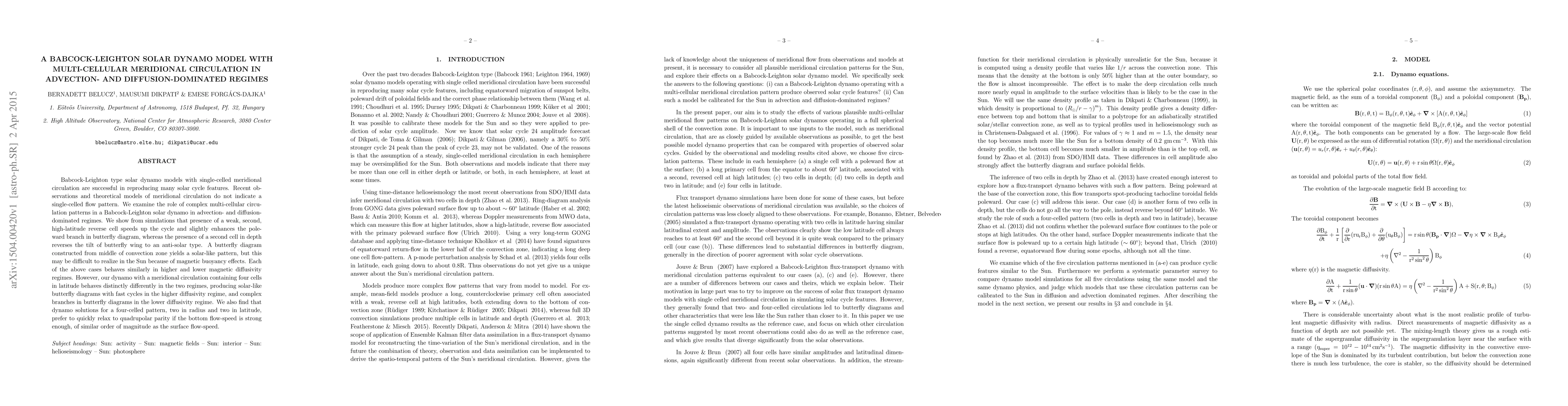 This paper investigates the impact of multi-cellular meridional circulation patterns in Babcock-Leighton solar dynamo models, showing that a second high-latitude cell accelerates the cycle and alters the butterfly diagram. A four-celled meridional circulation produces solar-like cycles in high diffusivity but complex patterns in low diffusivity regimes, while a quadrupolar parity is favored in strong bottom flow-speeds.